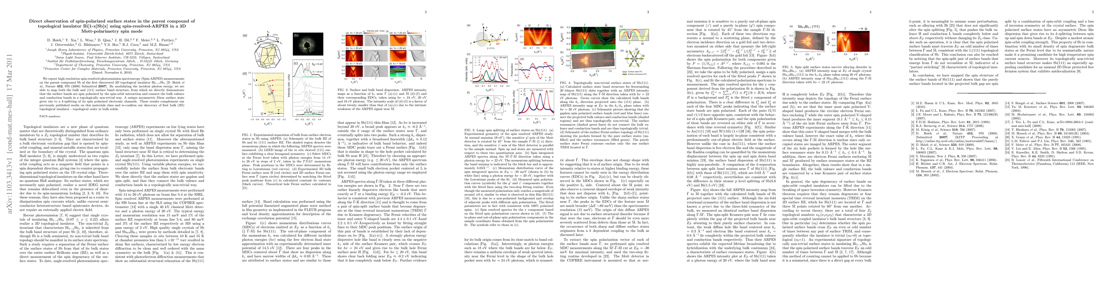 This paper reports high-resolution spin-resolved photoemission spectroscopy (Spin-ARPES) on the parent compound Sb, revealing spin-polarized surface states connected in a topologically non-trivial manner. The study confirms the presence of a unique asymmetric Dirac surface state, supporting the classification of Bi-Sb as a 3D topological insulator.