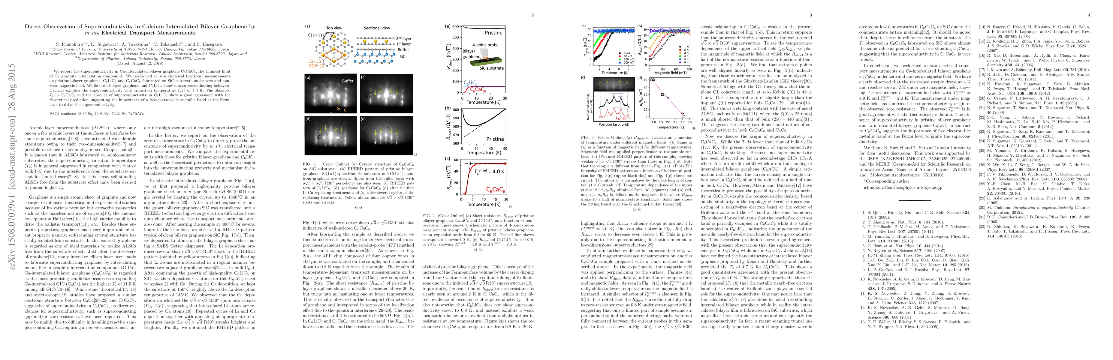 The research observes superconductivity in calcium-intercalated bilayer graphene (C$_6$CaC$_6$) with a transition temperature of 4.0 K, contrasting with non-superconducting behavior in pristine bilayer graphene and lithium-intercalated graphene, supporting theoretical predictions on the role of free-electron-like metallic bands at the Fermi level.