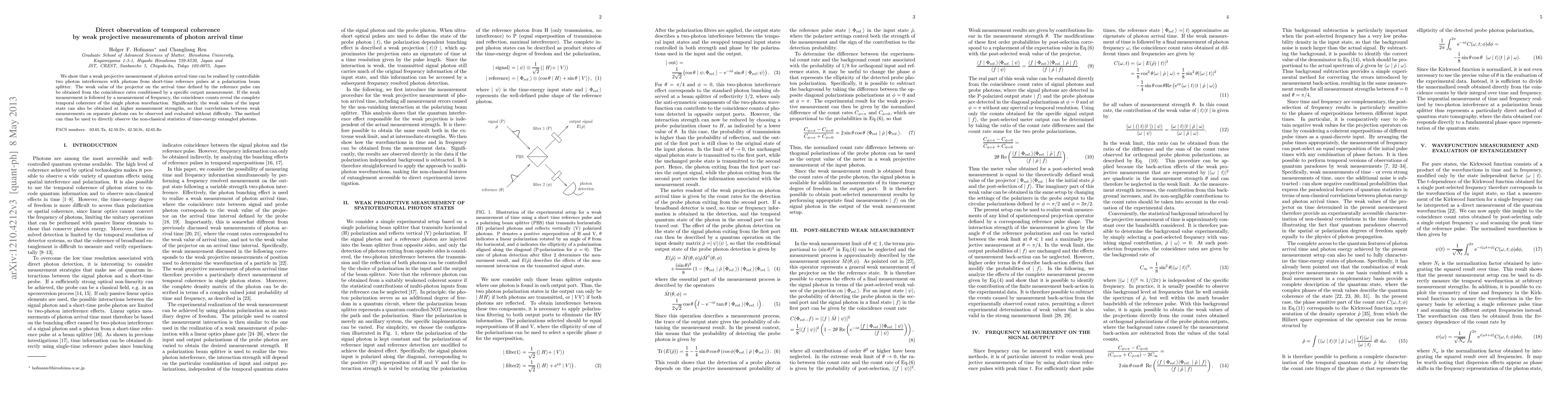 This paper demonstrates a method for directly observing temporal coherence using weak projective measurements of photon arrival time through controlled two-photon interferences. The technique reveals the complete temporal coherence of single photon wavefunctions and allows for the observation of non-classical statistics of time-energy entangled photons.
