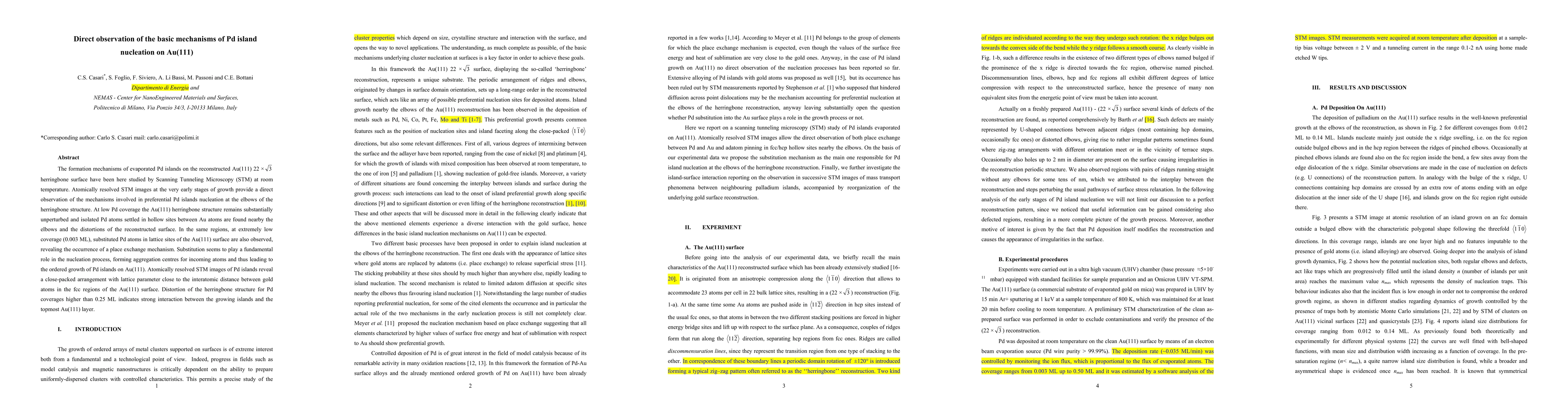 This study uses Scanning Tunneling Microscopy to observe the nucleation of Pd islands on the reconstructed Au(111) surface at room temperature, revealing preferential nucleation at herringbone elbows through place exchange mechanisms. As Pd coverage increases, Pd islands form close-packed arrangements, causing distortions in the Au(111) herringbone structure.