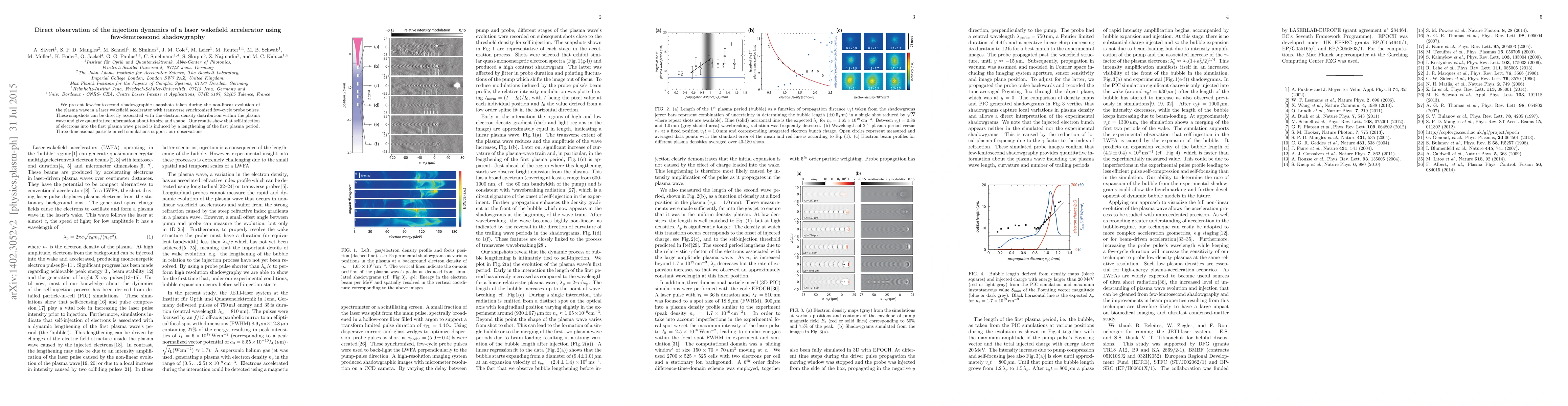 Researchers used a technique called few-femtosecond shadowgraphy to observe the injection dynamics of electrons into a laser wakefield accelerator. They found that the first plasma wave period can self-inject electrons, leading to improved acceleration efficiency.