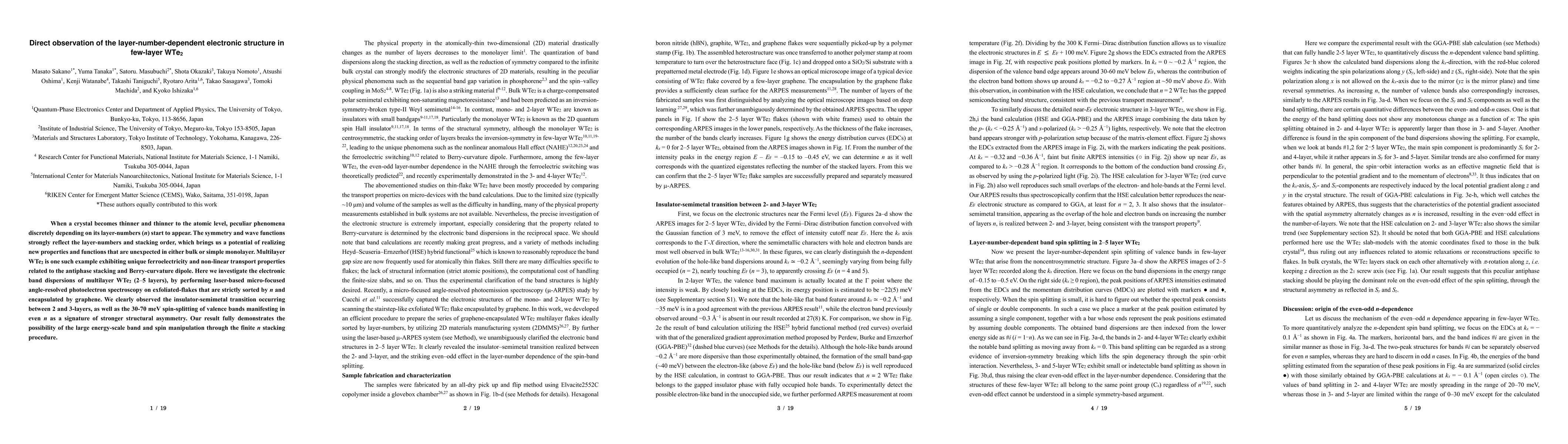 This study presents novel findings on the layer-number-dependent change in the spin band splitting of WTe2, which has implications for our understanding of topological insulators.