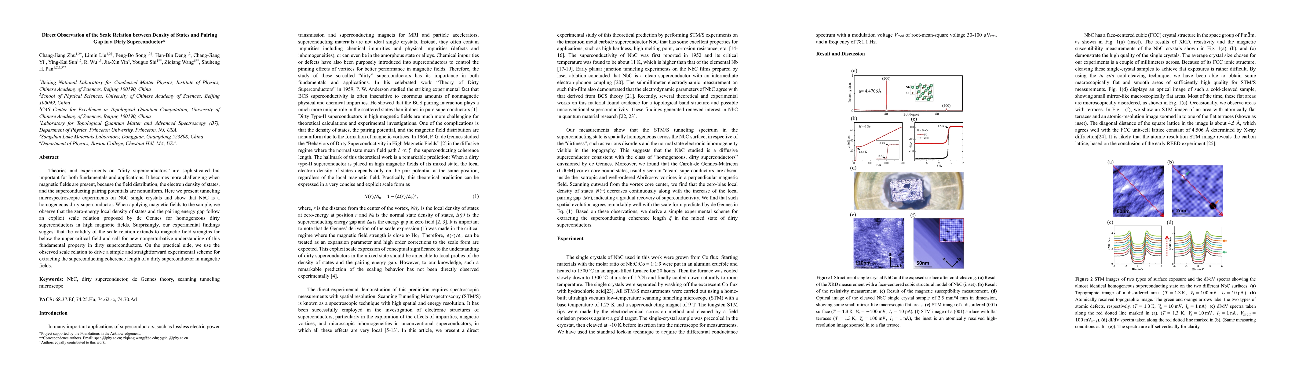 This paper reports tunneling microspectroscopic experiments on NbC single crystals, demonstrating a scale relation between the zero-energy local density of states and the pairing energy gap in a dirty superconductor under magnetic fields, extending beyond previously predicted limits. The findings suggest a new understanding of this fundamental property and provide a practical method for extracting superconducting coherence length.
