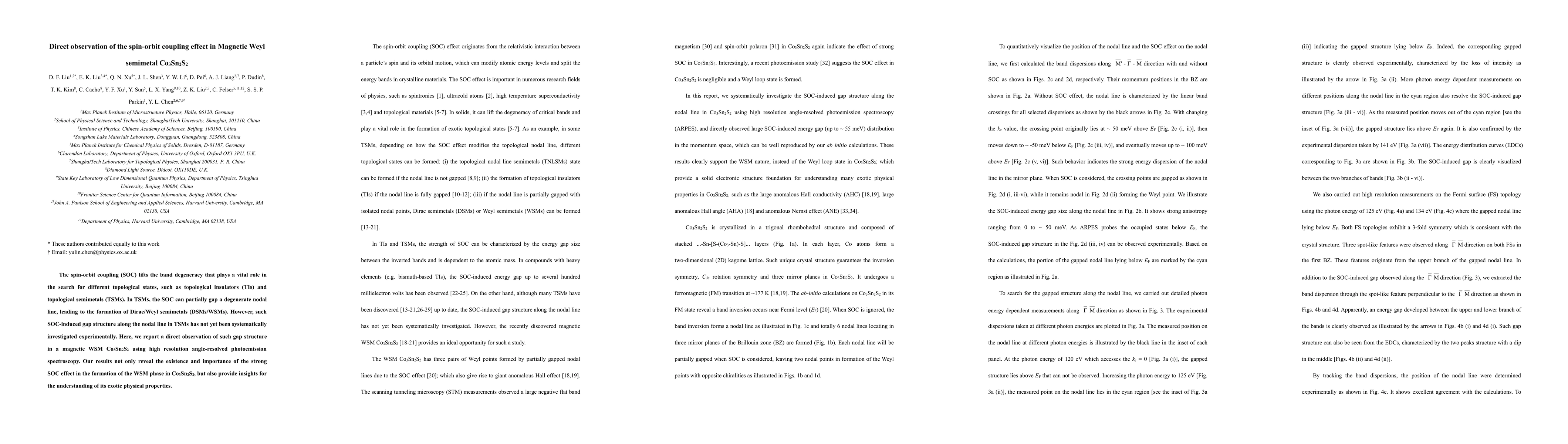 The paper reports a direct observation of spin-orbit coupling (SOC) effect in magnetic Weyl semimetal Co3Sn2S2 using high-resolution angle-resolved photoemission spectroscopy. This reveals the crucial role of strong SOC in forming the WSM phase, offering insights into its unique properties.