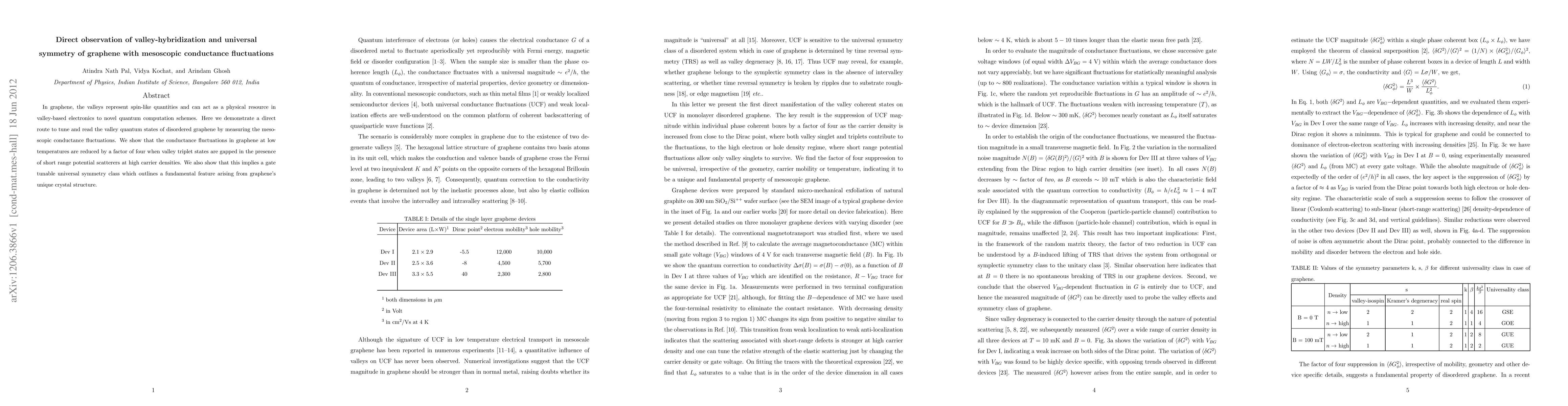 This paper demonstrates a method to tune and observe valley quantum states in disordered graphene through mesoscopic conductance fluctuations, revealing a four-fold reduction in fluctuations when valley triplet states are gapped, indicating a gate-tunable universal symmetry class linked to graphene's unique crystal structure.
