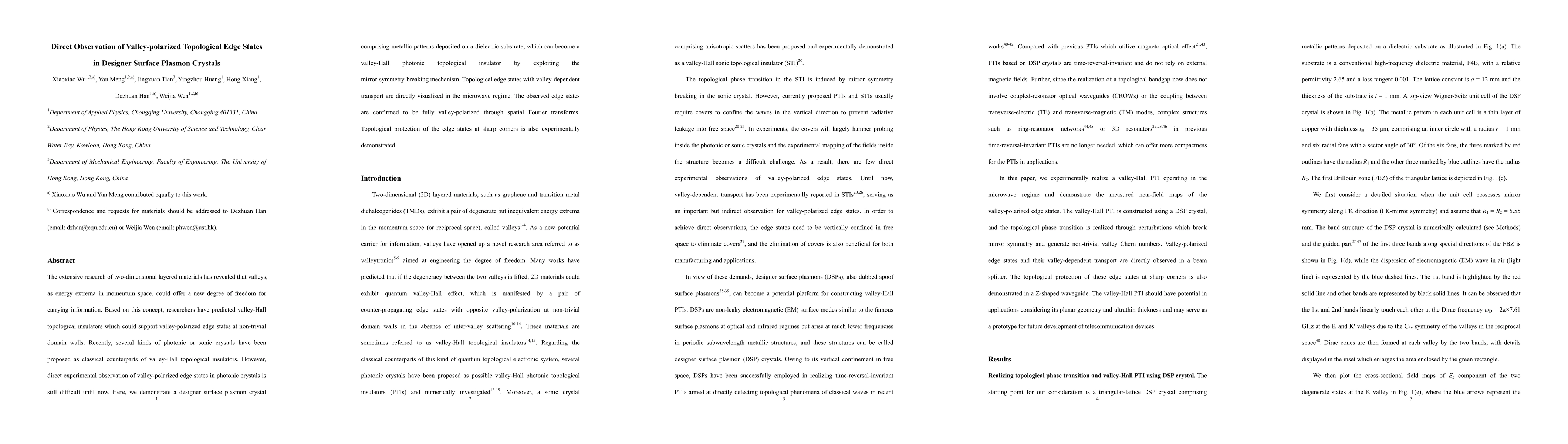 This paper presents direct experimental observation of valley-polarized topological edge states in designer surface plasmon crystals, confirming their topological protection and visualizing them in the microwave regime. The study demonstrates these states through spatial Fourier transforms and showcases their robustness at sharp corners.