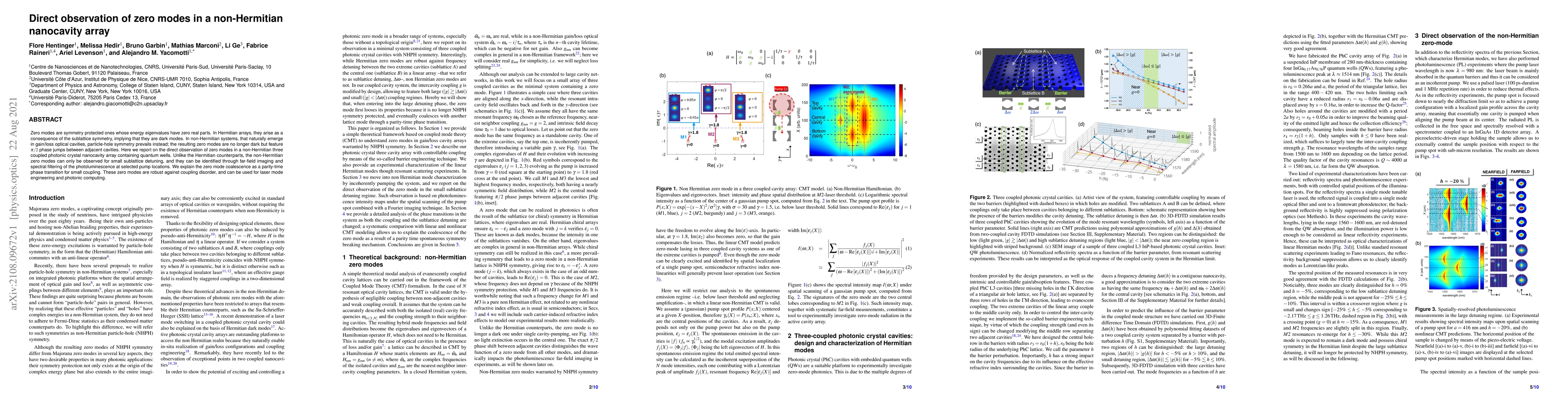 This paper reports the direct observation of non-Hermitian zero modes in a photonic crystal nanocavity array, which exhibit unique ${\pi}/2$ phase jumps. Unlike in Hermitian systems, these modes are visible under specific conditions and can be utilized for advanced laser and photonic computing applications.