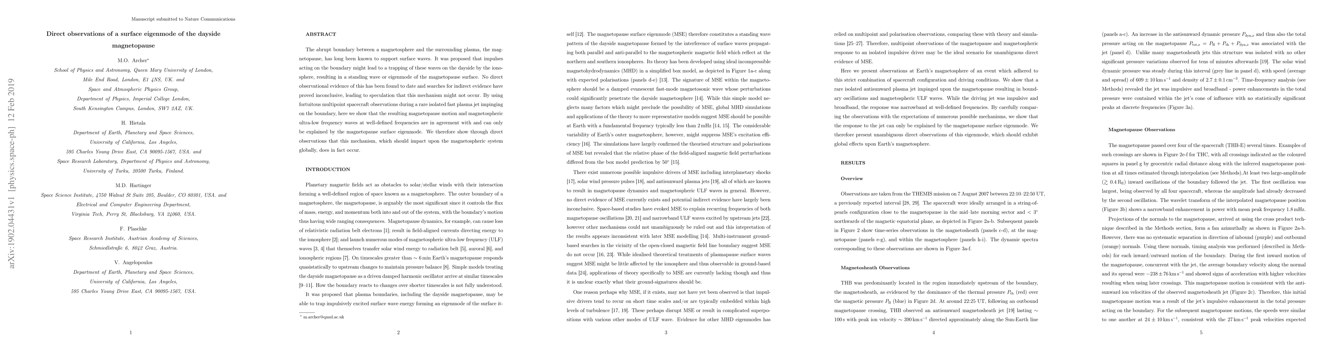 Researchers directly observe a surface eigenmode of the dayside magnetopause, confirming that impulses on the boundary can lead to a standing wave or eigenmode, which affects the magnetosphere globally.