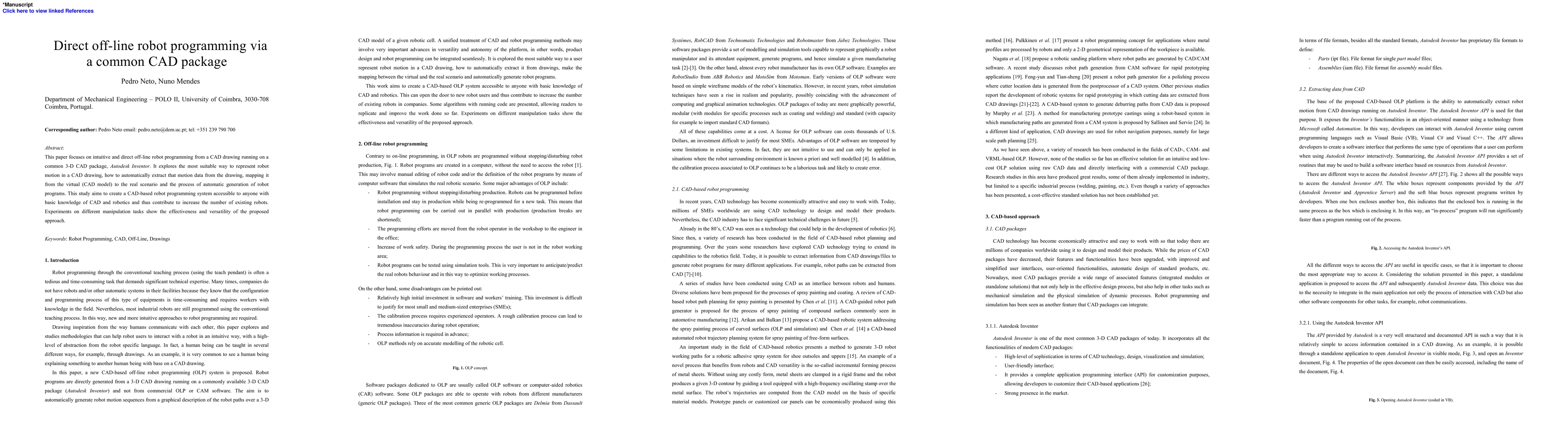 This paper proposes a novel CAD-based system for intuitive off-line robot programming directly from 3-D CAD drawings, focusing on automatic extraction and mapping of motion data to generate robot paths/programs. Experiments demonstrate its effectiveness and versatility for various manipulation tasks.