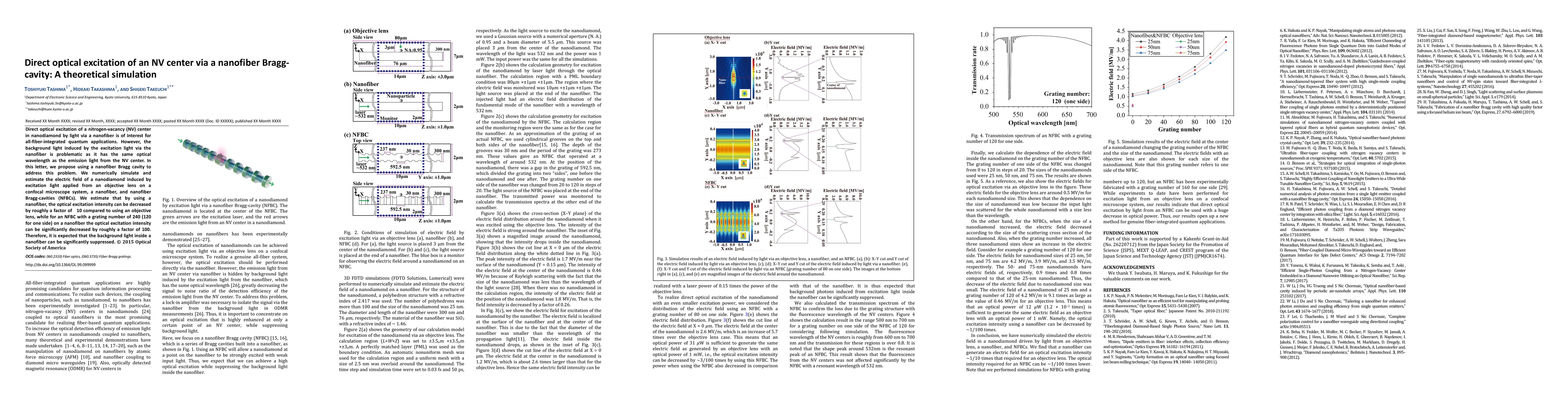 This paper proposes using a nanofiber Bragg cavity to reduce background light interference during the direct optical excitation of NV centers in nanodiamonds, achieving a significant decrease in excitation intensity and suppression of background light. Numerical simulations suggest a reduction by a factor of 100 compared to conventional methods.