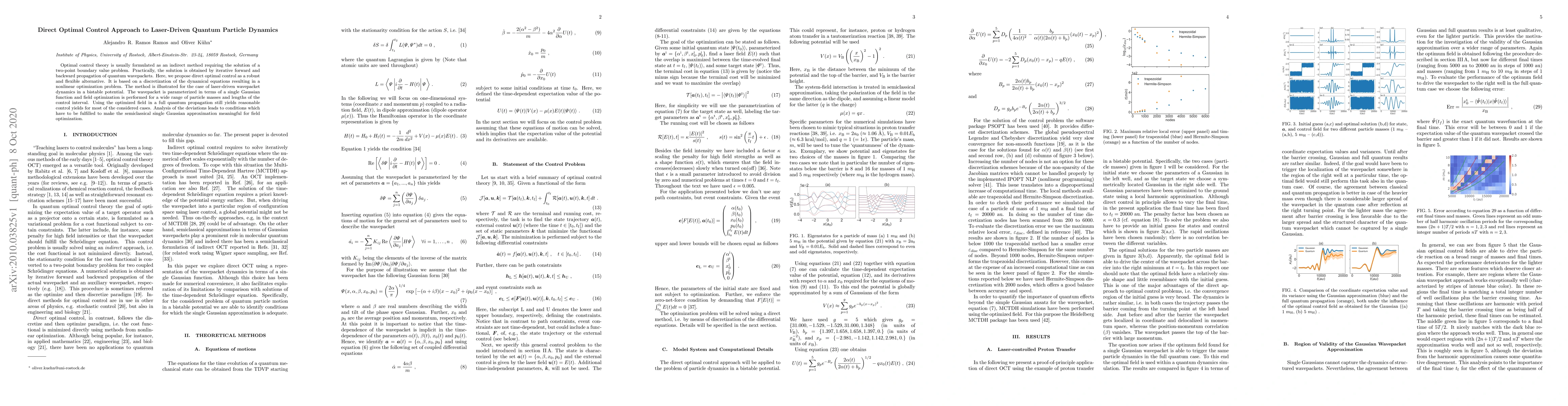 This paper proposes a direct optimal control method for laser-driven quantum particle dynamics, contrasting it with traditional indirect methods. The method optimizes laser fields directly through a nonlinear optimization problem, demonstrating its effectiveness in controlling wavepacket dynamics in a bistable potential.