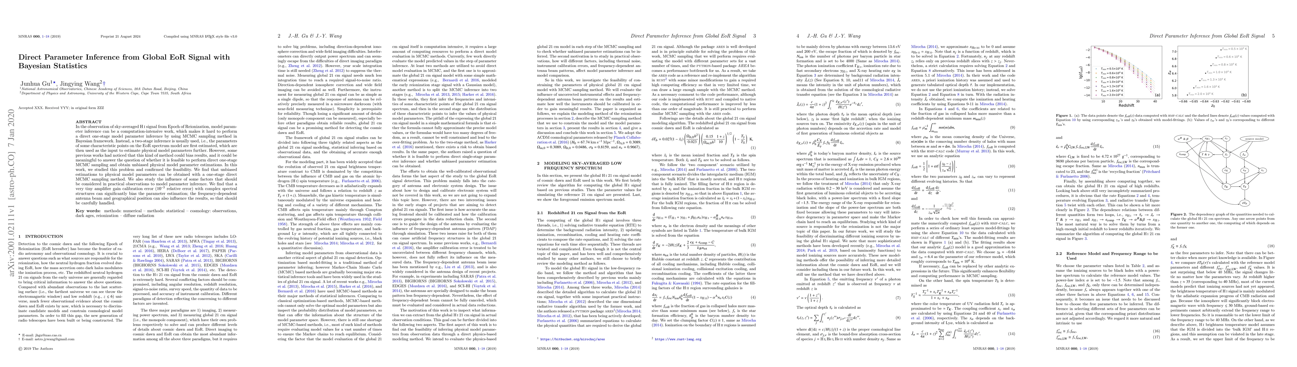 This paper investigates the feasibility of direct one-stage MCMC sampling for parameter inference in the global EoR signal, confirming its viability for unbiased estimations. It also highlights the impact of factors like amplifier gain calibration errors, frequency-dependent antenna beams, and geographical positioning on parameter inference.