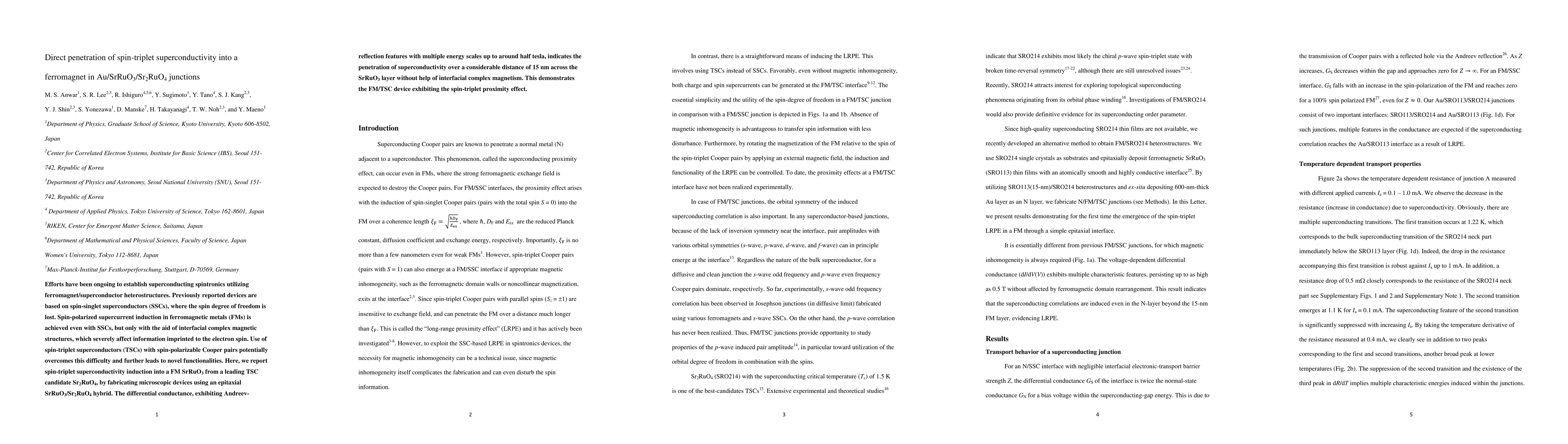 This paper reports the first demonstration of spin-triplet superconductivity penetrating a ferromagnetic layer of SrRuO3 from a spin-triplet superconductor Sr2RuO4, showcasing the spin-triplet proximity effect without the need for complex magnetic interfaces. The findings indicate superconductivity extends over 15 nm, offering potential for novel superconducting spintronics functionalities.