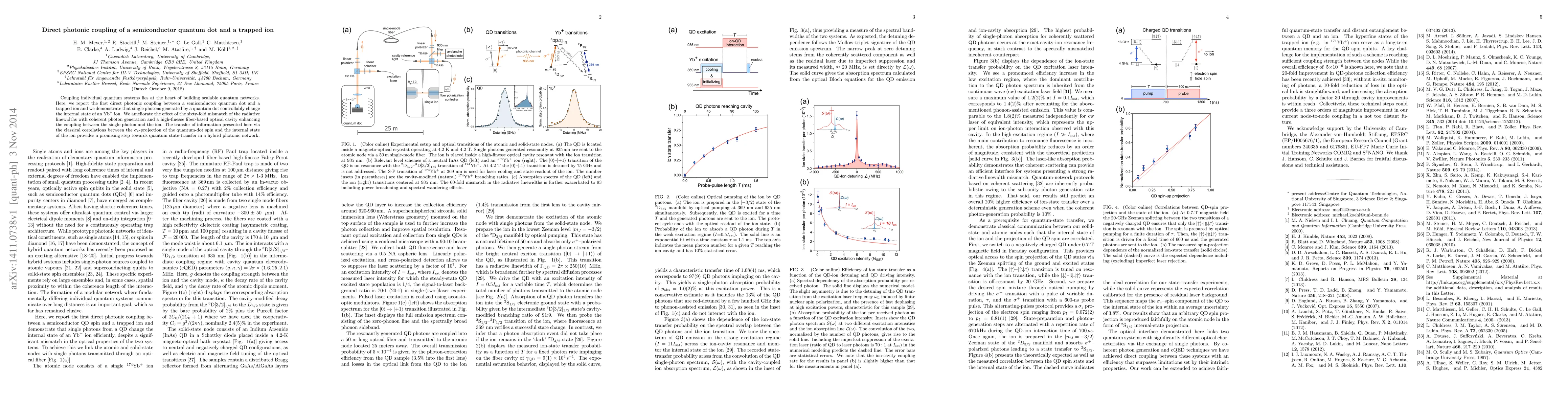 This paper reports the first direct photonic coupling between a semiconductor quantum dot and a trapped ion, enabling single photons from the quantum dot to control the internal state of a Yb+ ion. The researchers address a significant linewidth mismatch using coherent photon generation and a high-finesse optical cavity, paving the way for quantum state-transfer in hybrid photonic networks.