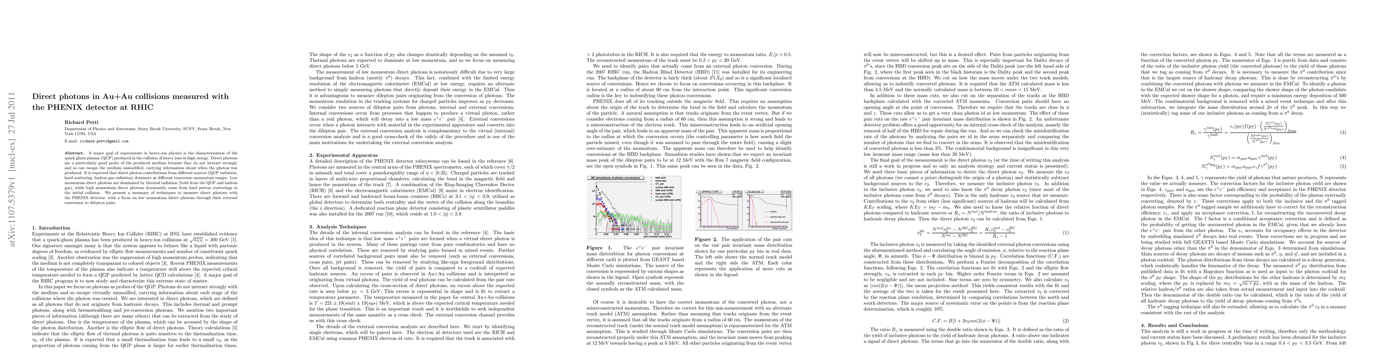 Researchers measured direct photons in Au+Au collisions at RHIC to study the quark gluon plasma, finding that low momentum photons are dominated by thermal radiation, while high momentum photons come from hard parton scatterings.