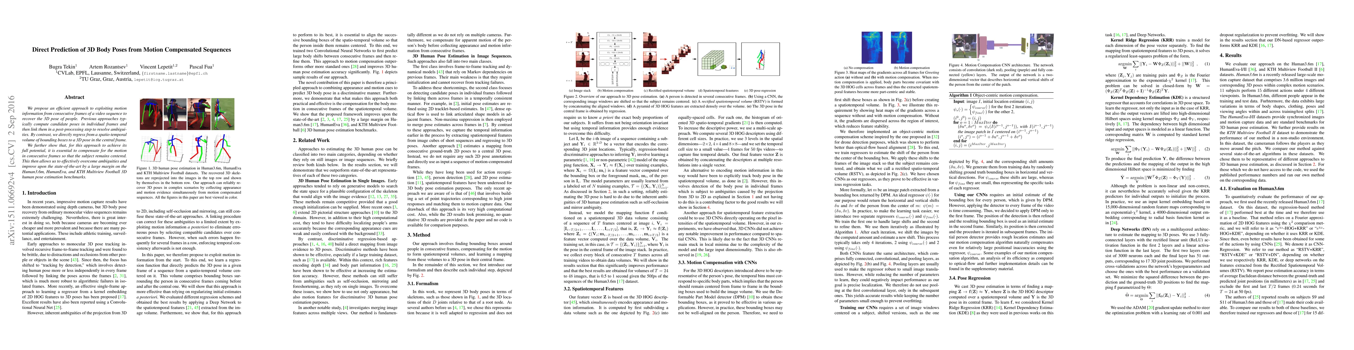 We propose an efficient approach to exploiting motion information from consecutive frames of a video sequence to recover the 3D pose of people. Previous approaches typically compute candidate poses in individual frames and then link them in a post-processing step to resolve ambiguities. By contrast, we directly regress from a spatio-temporal volume of bounding boxes to a 3D pose in the central frame. We further show that, for this approach to achieve its full potential, it is essential to compensate for the motion in consecutive frames so that the subject remains centered. This then allows us to effectively overcome ambiguities and improve upon the state-of-the-art by a large margin on the Human3.6m, HumanEva, and KTH Multiview Football 3D human pose estimation benchmarks.