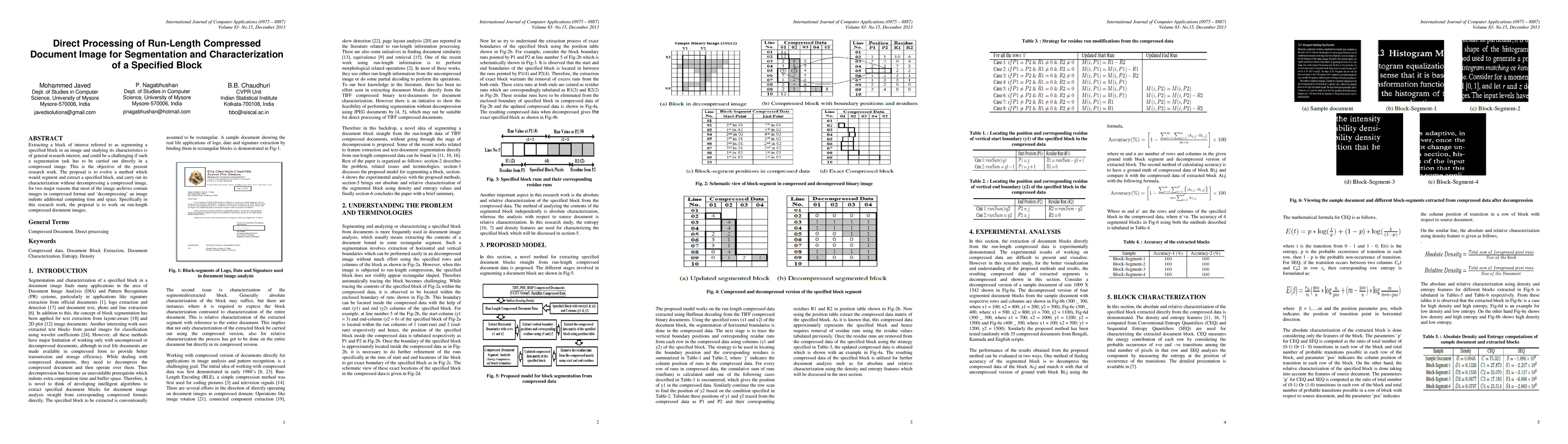 This research proposes a method for directly segmenting and characterizing a specified block in run-length compressed document images without decompressing the entire image, addressing the challenges of computational efficiency and storage constraints. The method aims to extract and analyze the block of interest directly from the compressed format.