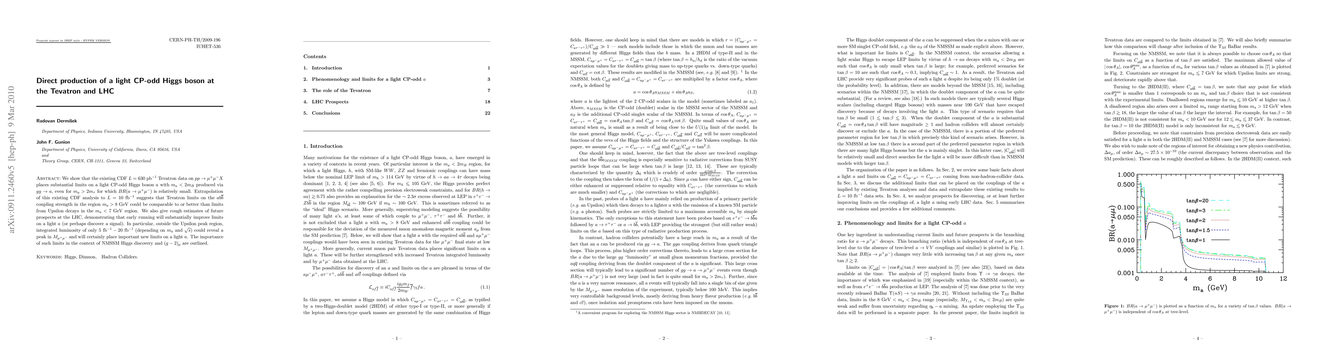 We show that the existing CDF $L=630 pb^{-1}$ Tevatron data on $pp\to \mu^+\mu^- + X$ places substantial limits on a light CP-odd Higgs boson $a$ with $m_a<2m_B$ produced via $gg\to a$, even for $m_a>2m_\tau$ for which $BR(a\to \mu^+\mu^-)$ is relatively small. Extrapolation of this existing CDF analysis to $L=10 fb^{-1}$ suggests that Tevatron limits on the $a b\anti b$ coupling strength in the region $m_a>8\gev$ could be comparable to or better than limits from Upsilon decays in the $m_a<7\gev$ region. We also give rough estimates of future prospects at the LHC, demonstrating that early running will substantially improve limits on a light $a$ (or perhaps discover a signal). In particular, outside the Upsilon peak region, integrated luminosity of only $5-20 fb^{-1}$ (depending on $m_a$ and $\sqrt s$) could reveal a peak in $M_{\mu^+\mu^-}$ and will certainly place important new limits on a light $a$. The importance of such limits in the context of NMSSM Higgs discovery and $(g-2)_\mu$ are outlined.