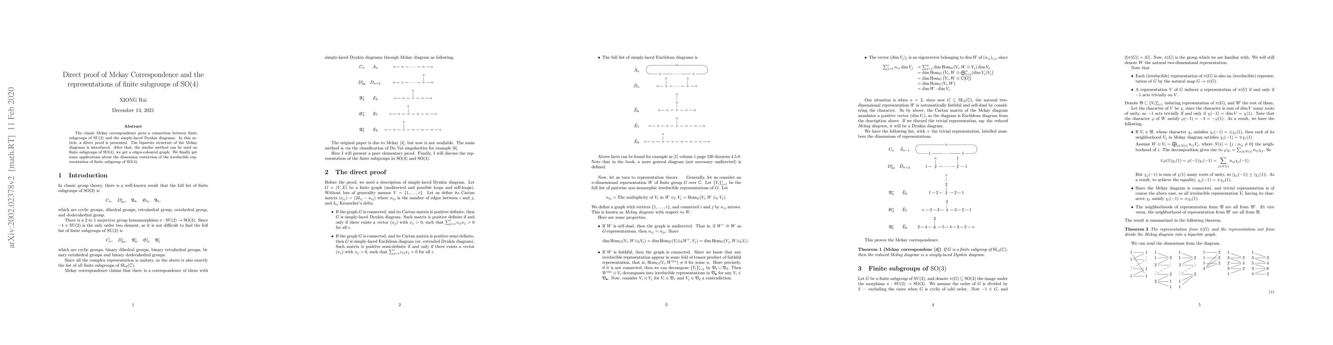 Researchers have provided a direct proof of the McKay Correspondence for finite subgroups of SO(4), establishing a connection between these groups and simply-laced Dynkin diagrams similar to those seen in SU(2). This breakthrough has significant implications for understanding the structure of symmetry groups.