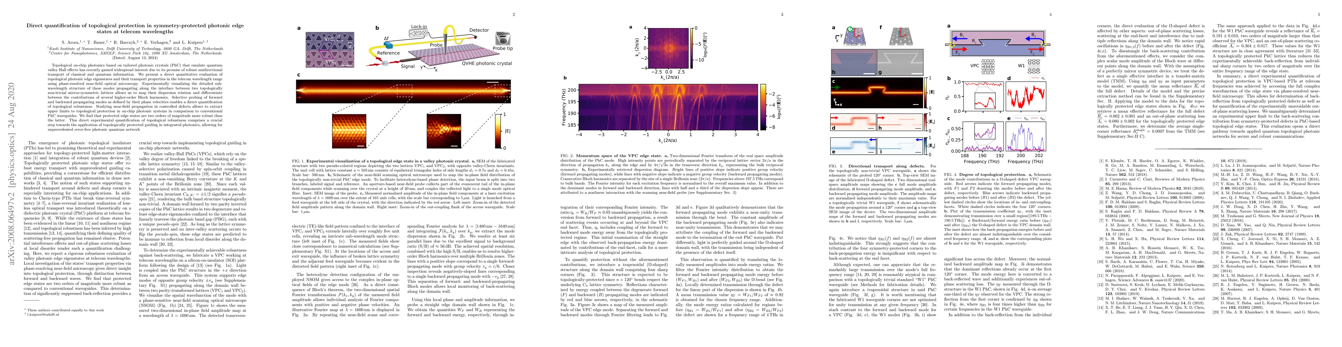 Topological on-chip photonics based on tailored photonic crystals (PhC) that emulate quantum valley Hall effects has recently gained widespread interest due to its promise of robust unidirectional transport of classical and quantum information. We present a direct quantitative evaluation of topological photonic edge eigenstates and their transport properties in the telecom wavelength range using phase-resolved near-field optical microscopy. Experimentally visualizing the detailed sub-wavelength structure of these modes propagating along the interface between two topologically non-trivial mirror-symmetric lattices allows us to map their dispersion relation and differentiate between the contributions of several higher-order Bloch harmonics. Selective probing of forward and backward propagating modes as defined by their phase velocities enables a direct quantification of topological robustness. Studying near-field propagation in controlled defects allows to extract upper limits to topological protection in on-chip photonic systems in comparison to conventional PhC waveguides. We find that protected edge states are two orders of magnitude more robust as compared to conventional PhC waveguides. This direct experimental quantification of topological robustness comprises a crucial step towards the application of topologically protected guiding in integrated photonics, allowing for unprecedented error-free photonic quantum networks.
