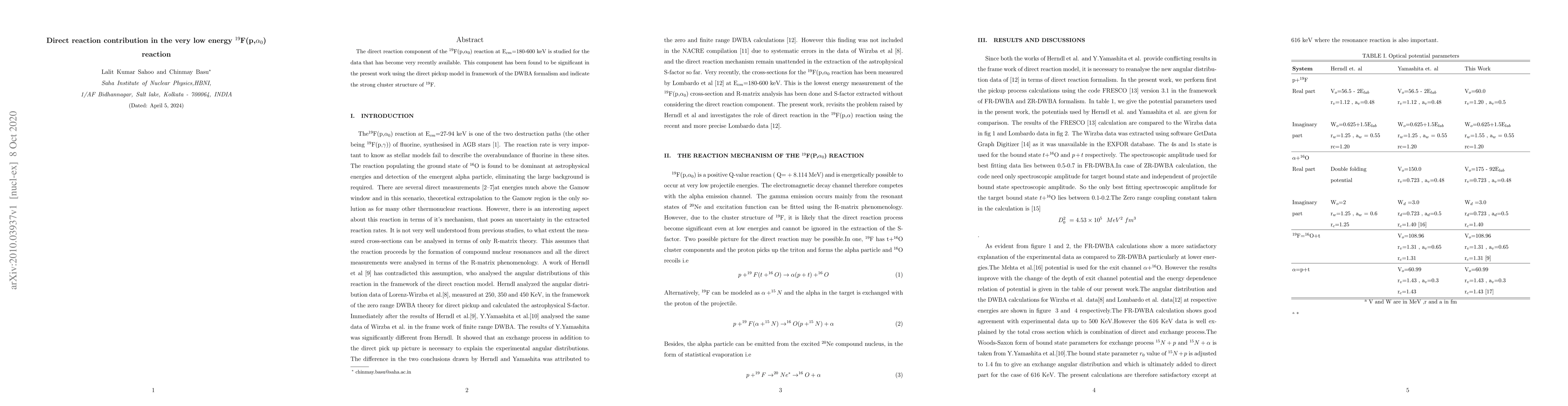 Researchers studied a nuclear reaction involving fluorine-19 using the direct pickup model, finding a significant direct reaction component that reveals strong cluster structure in 19F.