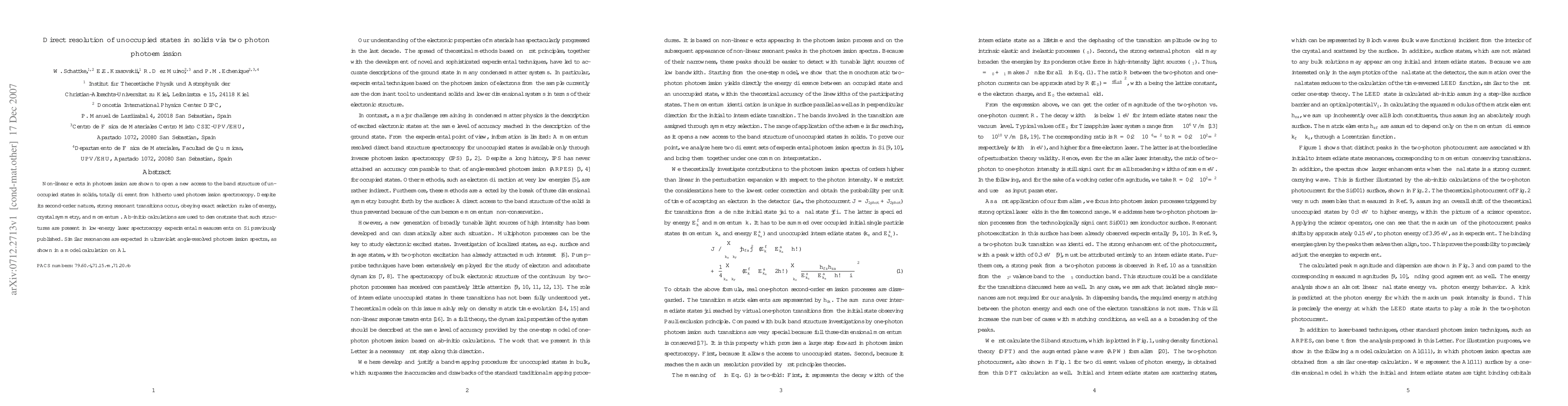 This paper demonstrates that two-photon photoemission exploits non-linear effects to directly resolve unoccupied states in solids, offering a distinct method from conventional photoemission spectroscopy. The study shows strong resonant transitions adhering to energy, symmetry, and momentum selection rules, supported by ab-initio calculations on Si and model predictions for Al.