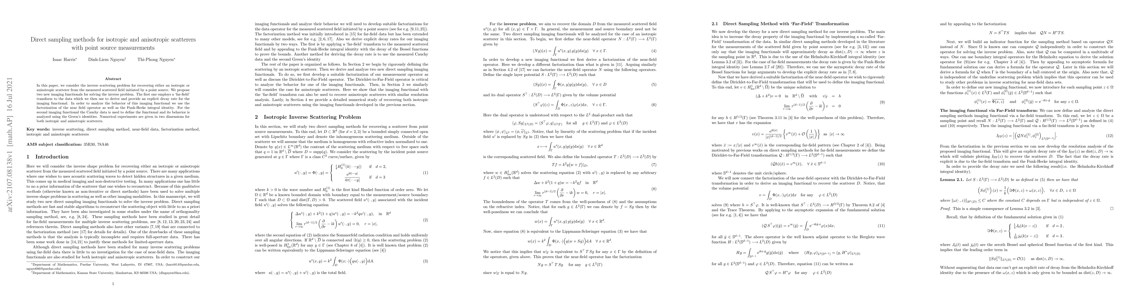 This paper proposes two new imaging functionals for solving inverse scattering problems to recover isotropic or anisotropic scatterers from point source measurements. The first functional uses a far-field transform and an explicit decay rate, analyzed via near field operator factorization and the Funk-Hecke identity. The second functional utilizes Cauchy data and is analyzed using Green's identities, with numerical experiments conducted in two dimensions.