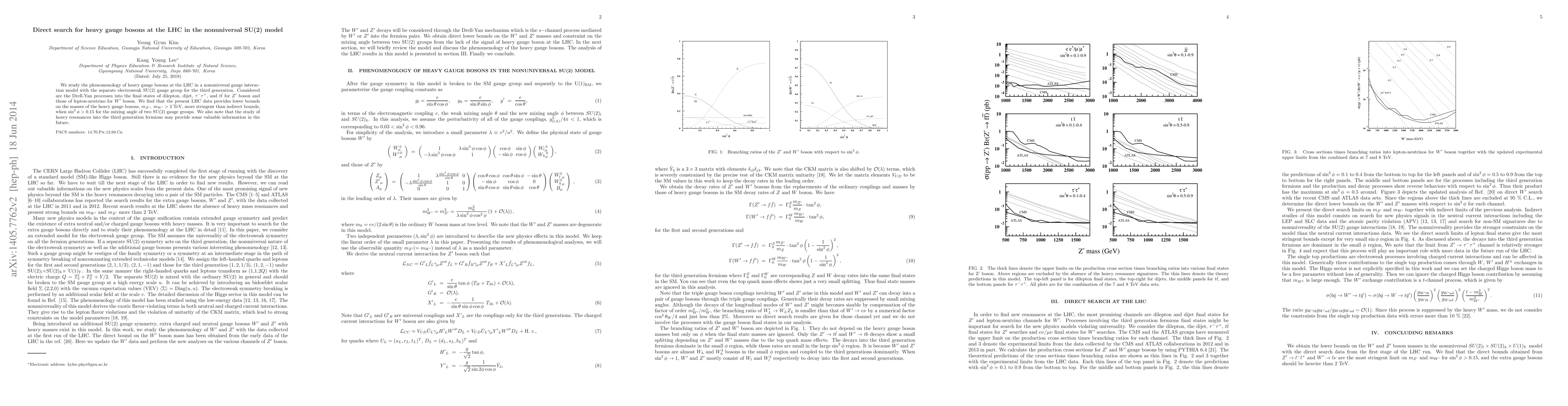 This paper investigates the production of heavy gauge bosons, $Z'$ and $W'$, in a nonuniversal SU(2) model at the LHC, focusing on Drell-Yan processes. The study finds that current LHC data sets more stringent mass lower bounds ($m_{Z'},~m_{W'} > 2$ TeV) than indirect bounds, especially for mixing angles $\sin^2 \phi > 0.15$.