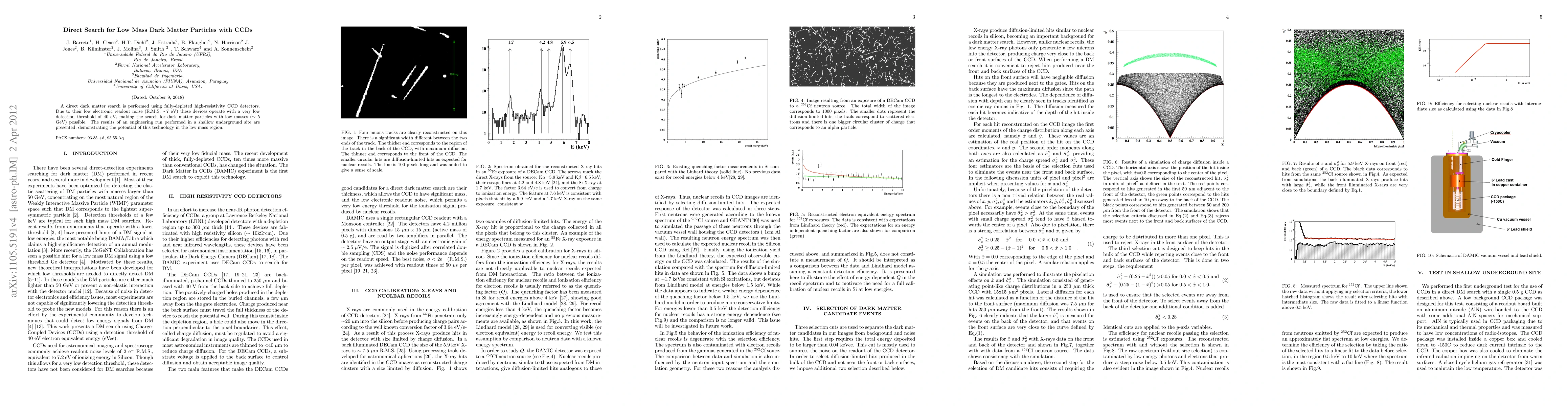 This paper reports on a direct search for low mass dark matter particles using fully-depleted CCD detectors, which exhibit low electronic readout noise and a detection threshold of 40 eV, enabling the detection of low-mass dark matter particles (~ 5 GeV). Initial results from an engineering run in a shallow underground site show the technology's potential in this search.