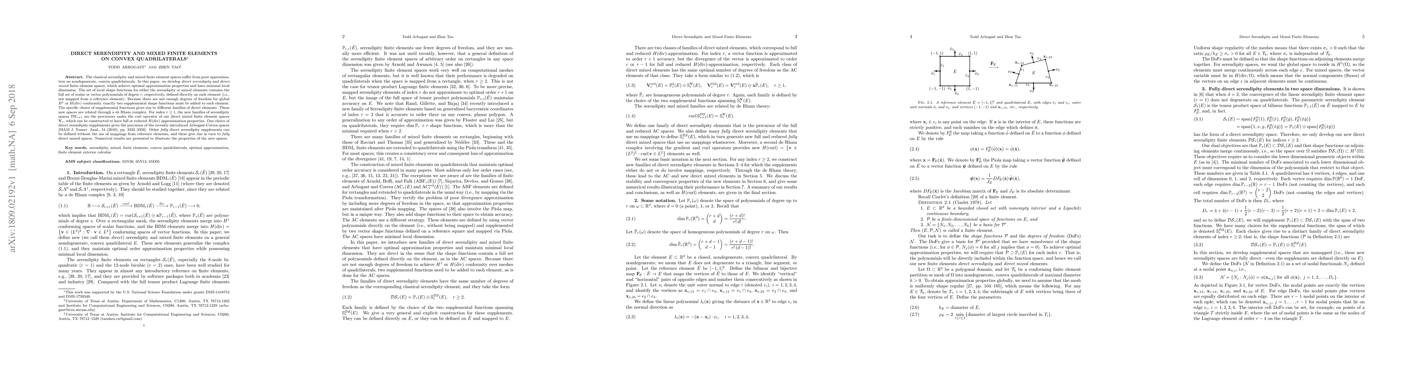 The classical serendipity and mixed finite element spaces suffer from poor approximation on nondegenerate, convex quadrilaterals. In this paper, we develop $\textit{direct serendipity}$ and $\textit{direct mixed}$ finite element spaces, which achieve optimal approximation properties and have minimal local dimension. The set of local shape functions for either the serendipity or mixed elements contains the full set of scalar or vector polynomials of degree $r$, respectively, defined directly on each element (i.e., not mapped from a reference element). Because there are not enough degrees of freedom for global $H^1$ or $H(\textrm{div})$ conformity, exactly two supplemental shape functions must be added to each element. The specific choice of supplemental functions gives rise to different families of direct elements. These new spaces are related through a de Rham complex. For index $r\ge1$, the new families of serendipity spaces ${\cal{DS}}_{r+1}$ are the precursors under the curl operator of our direct mixed finite element spaces ${\mathbf{V}}_r$, which can be constructed to have full or reduced $H(\textrm{div})$ approximation properties. One choice of direct serendipity supplements is the precursor of the recently introduced Arbogast-Correa spaces [SIAM J. Numer. Anal., 54 (2016), pp.~3332--3356]. Other $\textit{fully}$ direct serendipity supplements can be defined without the use of mappings from reference elements, and these give rise in turn to $\textit{fully}$ direct mixed spaces. Numerical results are presented to illustrate the properties of the new spaces.