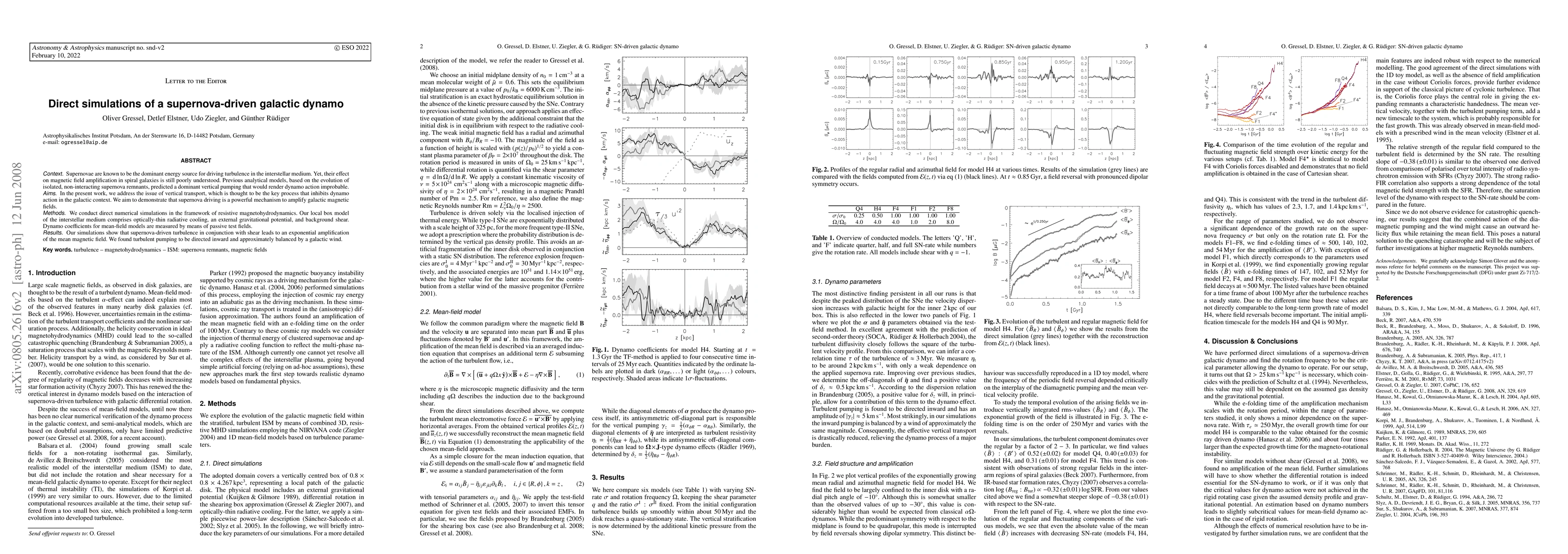 This paper uses direct numerical simulations to demonstrate that supernova-driven turbulence, combined with shear, can exponentially amplify magnetic fields in spiral galaxies. The study finds that turbulent pumping is effectively balanced by a galactic wind, supporting the feasibility of a galactic dynamo.