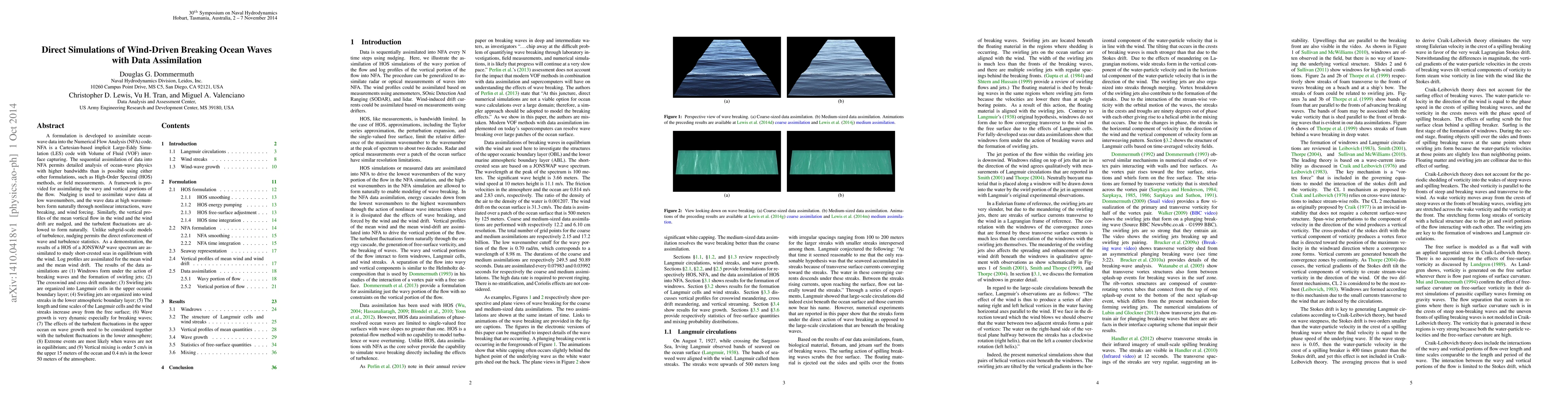 This paper develops a method to assimilate ocean-wave data into a Numerical Flow Analysis code for detailed simulations of wind-driven breaking waves, revealing complex dynamics such as Langmuir cells, wind streaks, and the impact of turbulent fluctuations on wave growth.
