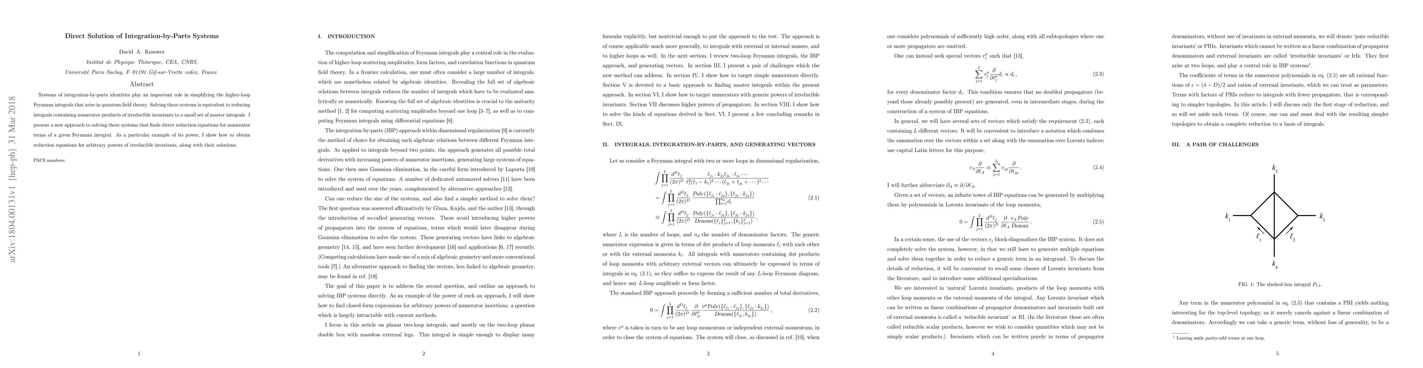 Systems of integration-by-parts identities play an important role in simplifying the higher-loop Feynman integrals that arise in quantum field theory. Solving these systems is equivalent to reducing integrals containing numerator products of irreducible invariants to a small set of master integrals. I present a new approach to solving these systems that finds direct reduction equations for numerator terms of a given Feynman integral. As a particular example of its power, I show how to obtain reduction equations for arbitrary powers of irreducible invariants, along with their solutions.
