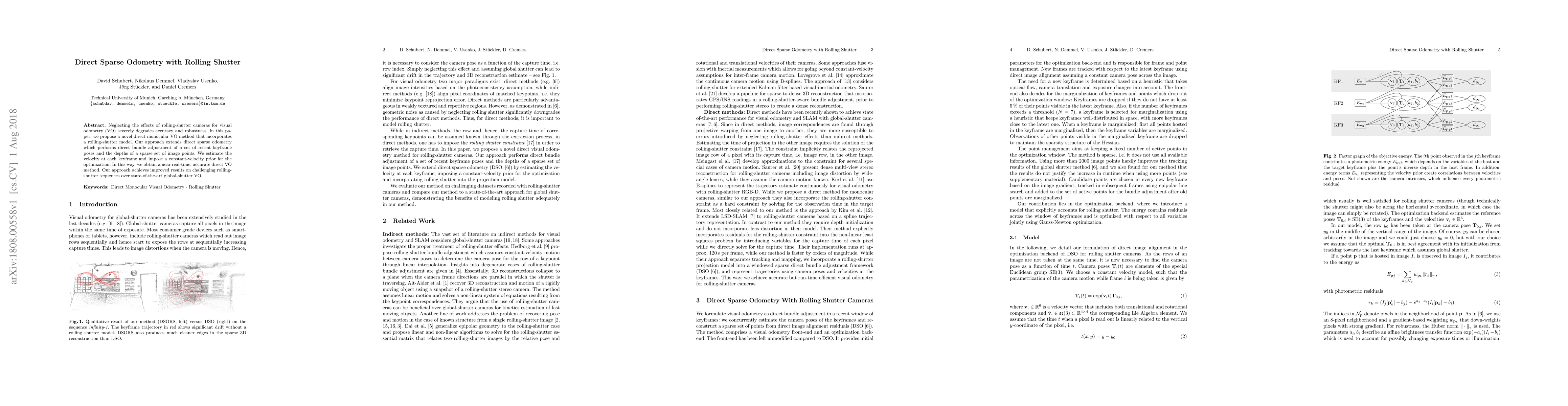 This paper proposes a novel direct monocular visual odometry method that incorporates a rolling-shutter model to improve accuracy and robustness. The method extends direct sparse odometry with a constant-velocity prior, achieving near real-time performance and outperforming state-of-the-art global-shutter VO on challenging sequences.