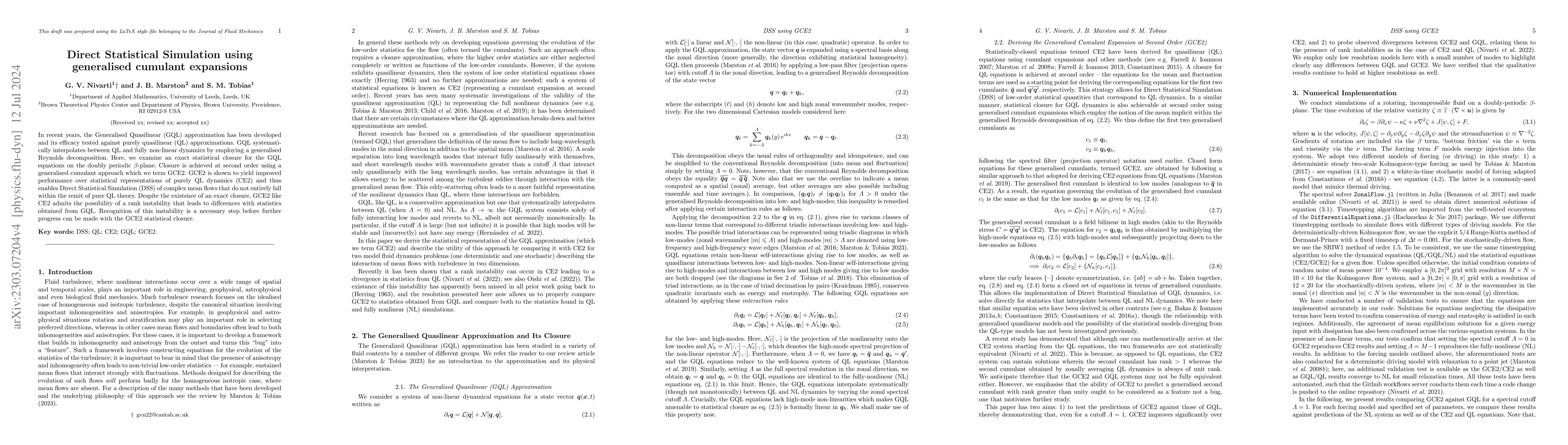 This paper develops an exact statistical closure, termed GCE2, for the Generalised Quasilinear (GQL) approximation to simulate complex mean flows using Direct Statistical Simulation (DSS). It shows improved performance over purely quasilinear (QL) dynamics but acknowledges potential rank instability that can affect its accuracy.