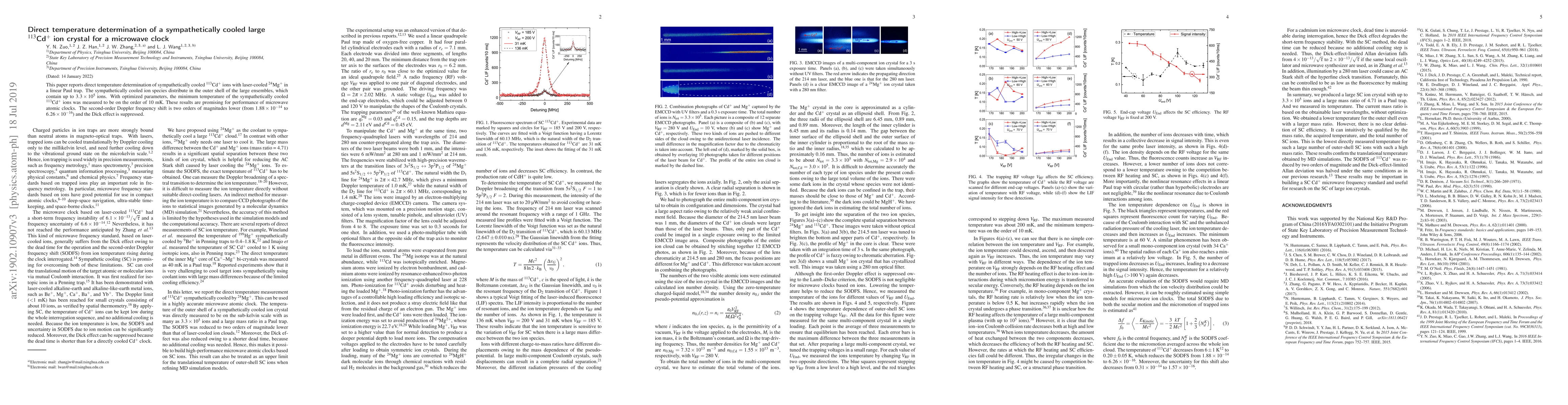 This paper reports the direct temperature determination of sympathetically cooled 113Cd+ ions using laser-cooled 24Mg+ in a linear Paul trap, achieving minimum temperatures of tens of mK, which shows promising performance for microwave atomic clocks with significantly reduced frequency shifts.