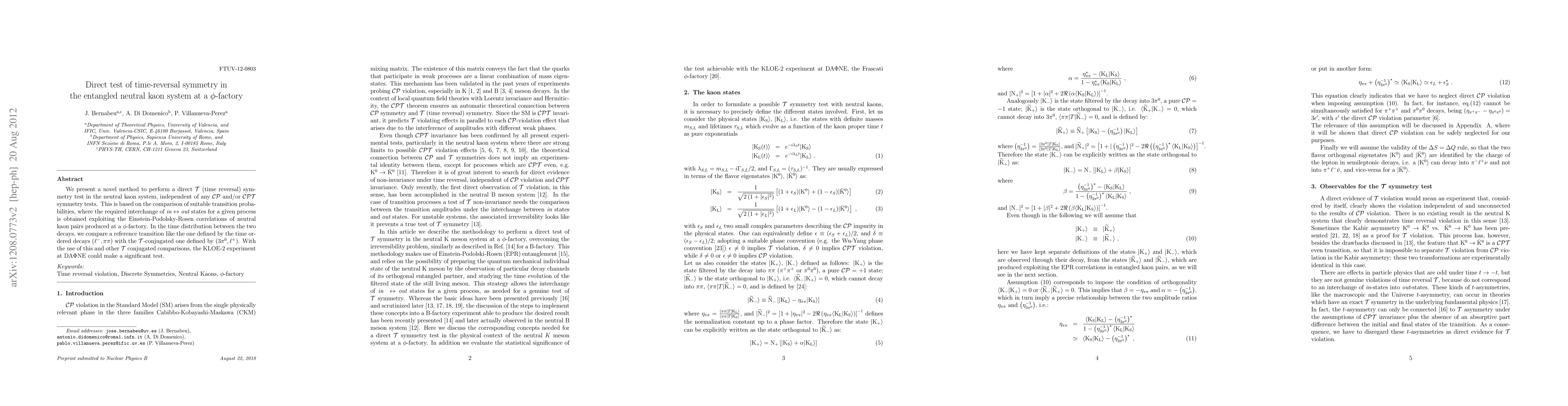 We present a novel method to perform a direct T (time reversal) symmetry test in the neutral kaon system, independent of any CP and/or CPT symmetry tests. This is based on the comparison of suitable transition probabilities, where the required interchange of in <-> out states for a given process is obtained exploiting the Einstein-Podolsky-Rosen correlations of neutral kaon pairs produced at a $\phi$-factory. In the time distribution between the two decays, we compare a reference transition like the one defined by the time ordered decays $(\ell^-,\pi\pi)$ with the T -conjugated one defined by $(3\pi^0, \ell^+)$. With the use of this and other T conjugated comparisons, the KLOE-2 experiment at DA$\Phi$NE could make a significant test.