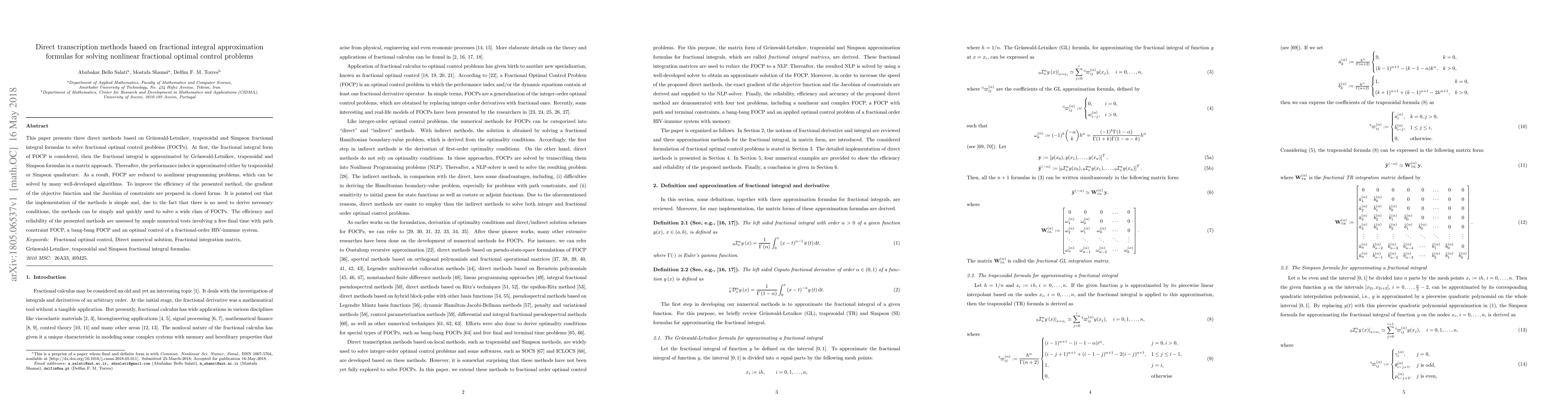 Three direct methods based on fractional integral approximation formulas are presented to solve nonlinear fractional optimal control problems, reducing them to nonlinear programming problems that can be solved with existing algorithms.
