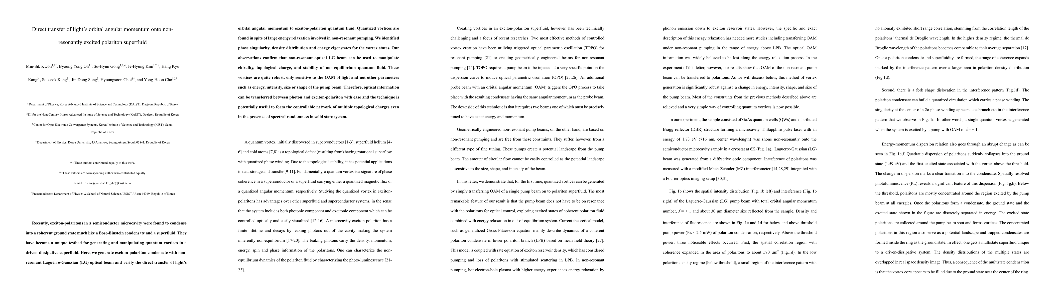 Researchers successfully transferred light's orbital angular momentum to a non-resonantly excited polariton superfluid, creating robust quantum vortices with potential applications in controlling topological charges.