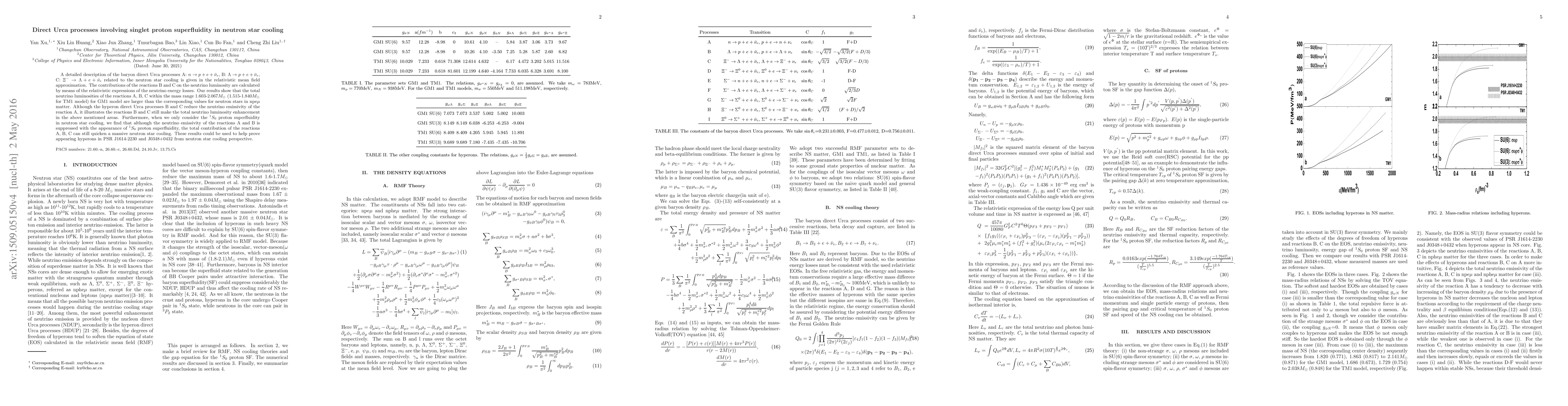 This paper investigates baryon direct Urca processes in neutron star cooling within the relativistic mean field approximation, finding that hyperon processes enhance total neutrino luminosity despite reducing the emissivity of proton processes. The presence of singlet proton superfluidity still accelerates cooling, suggesting implications for neutron star cooling in PSR J1614-2230 and J0348+0432.