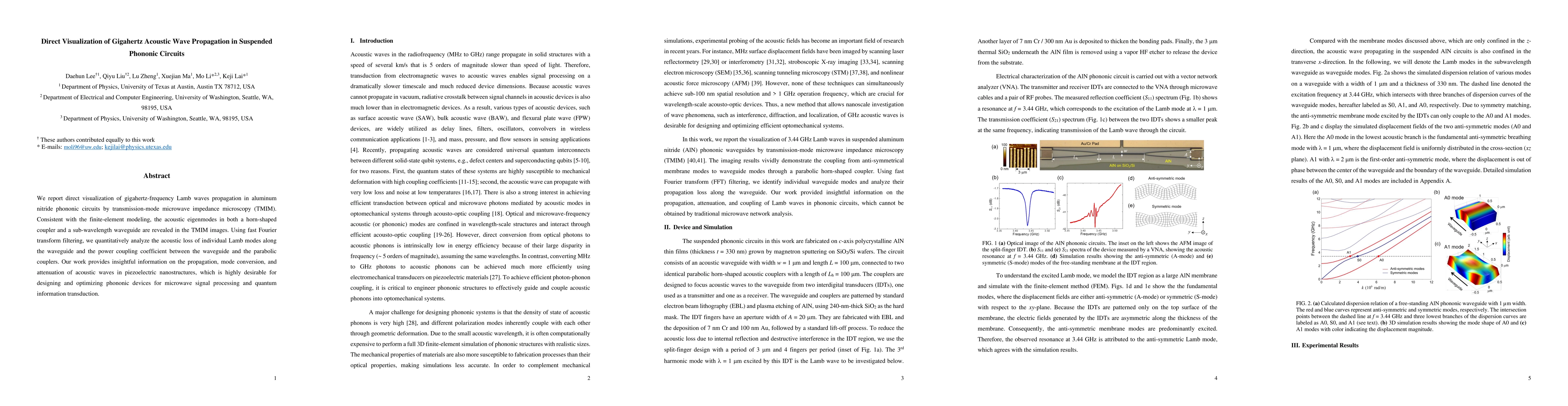 This study employs transmission-mode microwave impedance microscopy to visualize gigahertz Lamb waves in aluminum nitride phononic circuits, revealing acoustic eigenmodes and analyzing loss and coupling. The findings offer critical insights for phononic device design in microwave and quantum applications.
