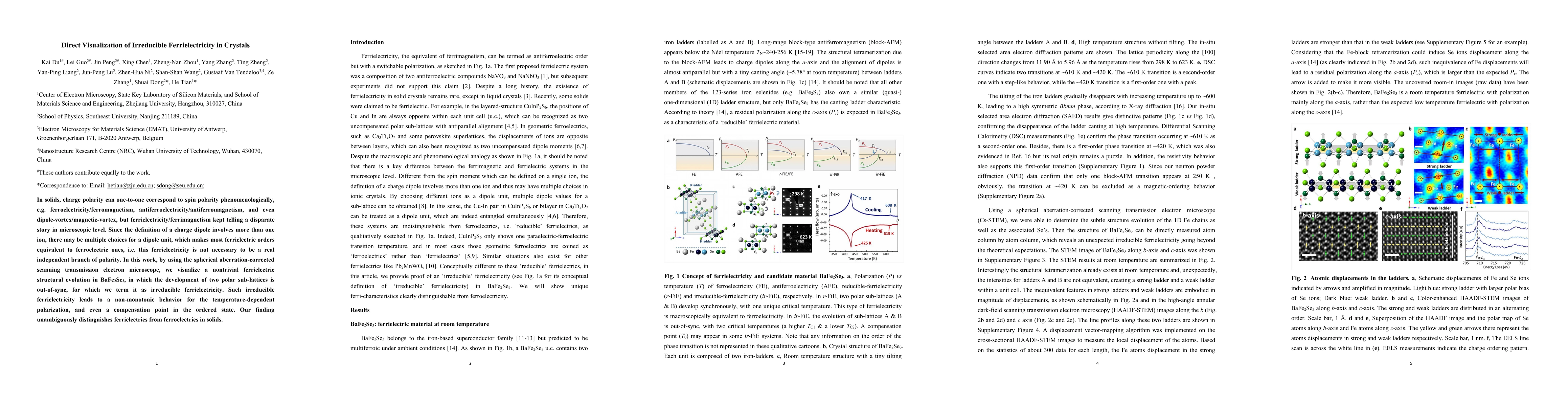 In solids, charge polarity can one-to-one correspond to spin polarity phenomenologically, e.g. ferroelectricity/ferromagnetism, antiferroelectricity/antiferromagnetism, and even dipole-vortex/magnetic-vortex, but ferrielectricity/ferrimagnetism kept telling a disparate story in microscopic level. Since the definition of a charge dipole involves more than one ion, there may be multiple choices for a dipole unit, which makes most ferrielectric orders equivalent to ferroelectric ones, i.e. this ferrielectricity is not necessary to be a real independent branch of polarity. In this work, by using the spherical aberration-corrected scanning transmission electron microscope, we visualize a nontrivial ferrielectric structural evolution in BaFe2Se3, in which the development of two polar sub-lattices is out-of-sync, for which we term it as irreducible ferrielectricity. Such irreducible ferrielectricity leads to a non-monotonic behavior for the temperature-dependent polarization, and even a compensation point in the ordered state. Our finding unambiguously distinguishes ferrielectrics from ferroelectrics in solids.