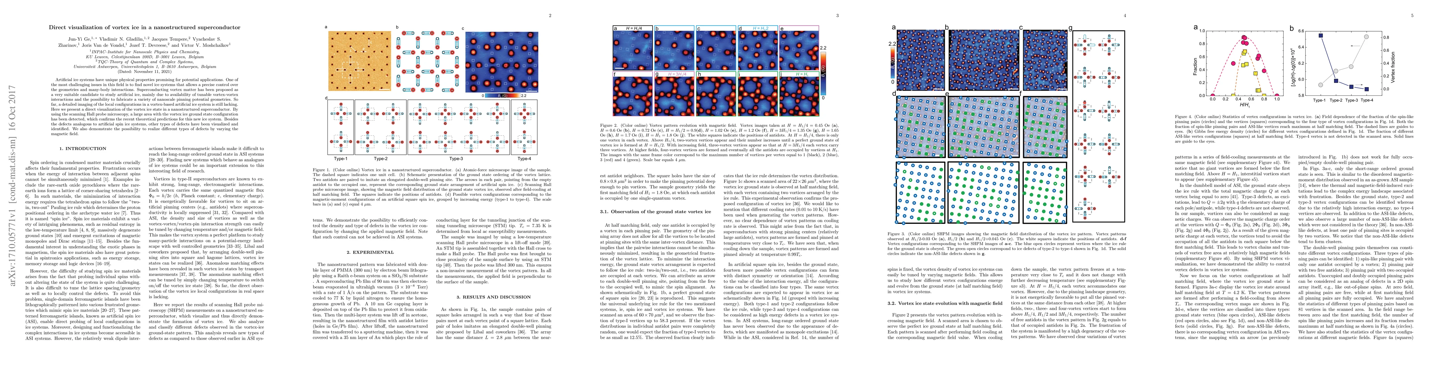 This paper presents the first direct visualization of vortex ice in a nanostructured superconductor using scanning Hall probe microscopy, confirming theoretical predictions and revealing various defect types analogous to artificial spin ice. The study demonstrates the ability to control defect formation by adjusting the magnetic field.