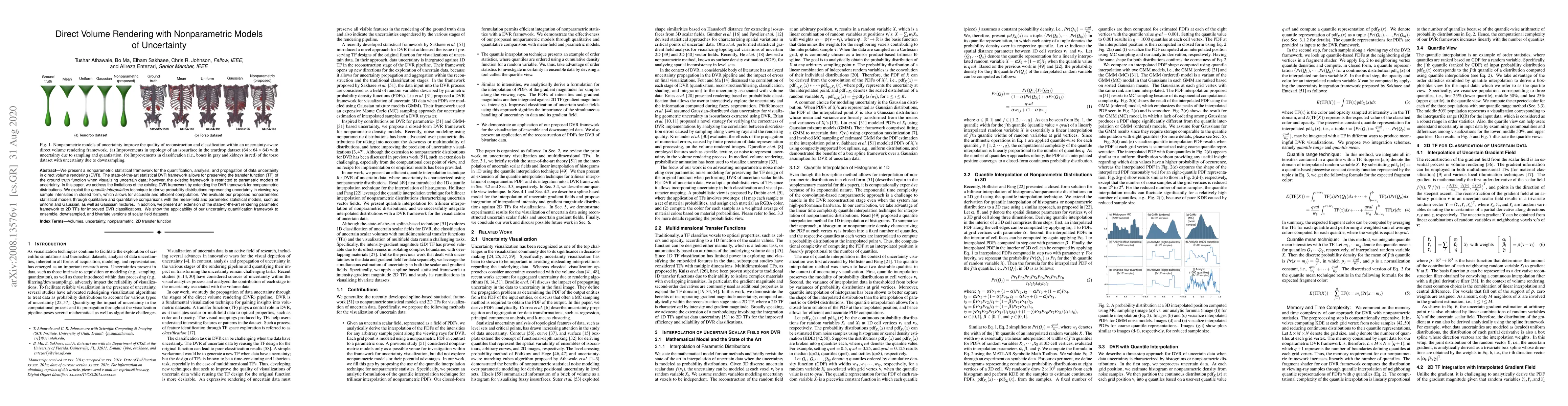 This paper introduces a nonparametric statistical framework for direct volume rendering that quantifies and analyzes data uncertainty without relying on parametric models. It employs quantile interpolation to derive probability distributions for viewing-ray sample intensities, enabling accurate and efficient uncertainty representation and visualization.