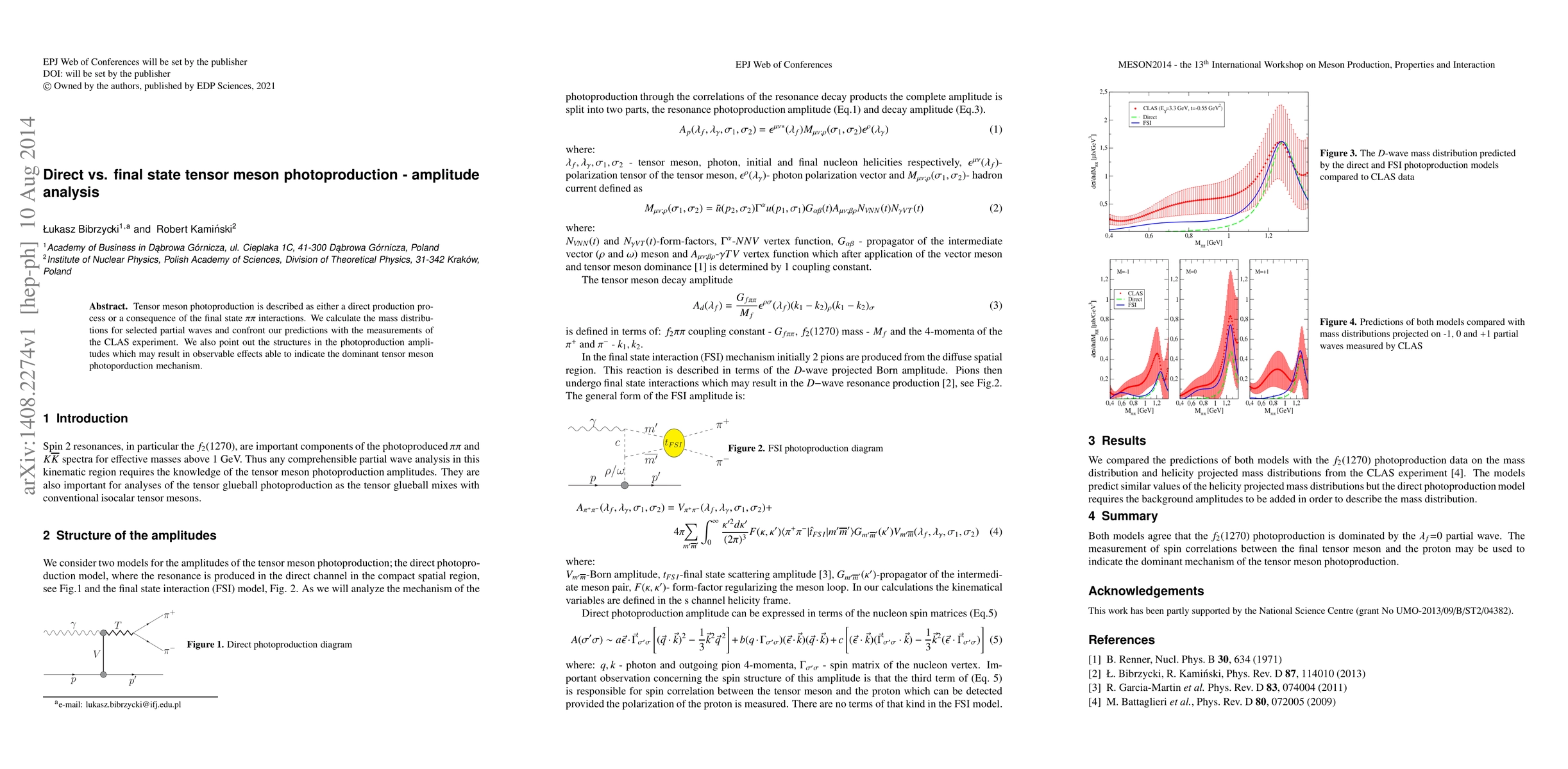 This study investigates tensor meson photoproduction, distinguishing between direct production and final state ππ interactions, and analyzes mass distributions for selected partial waves. The findings are compared with CLAS experiment data, highlighting potential observable effects that may reveal the dominant production mechanism.