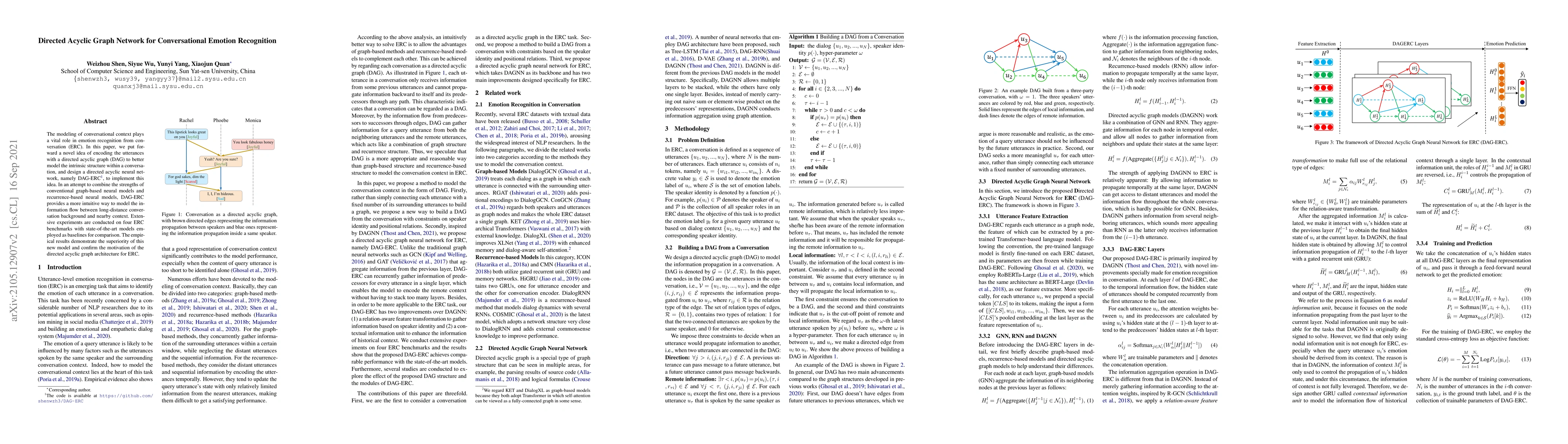 This paper proposes a Directed Acyclic Graph Network (DAG-ERC) to enhance emotion recognition from conversation by modeling the intrinsic structure within a conversation. The DAG-ERC model combines the strengths of graph-based and recurrence-based neural models, achieving superior performance on four ERC benchmarks compared to state-of-the-art baselines.