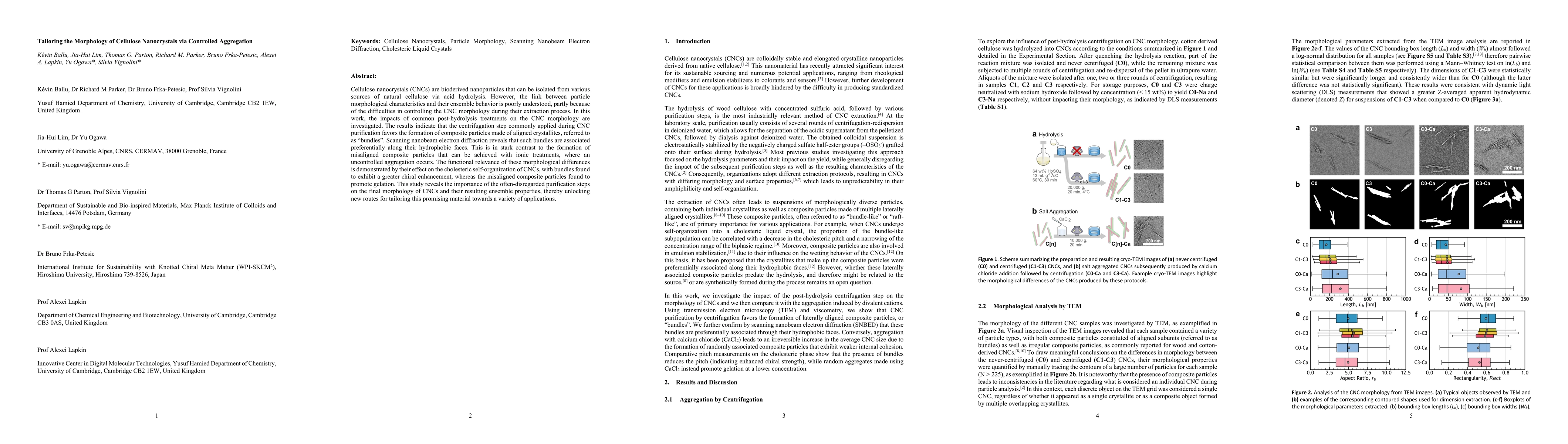This study investigates how post-hydrolysis treatments influence the morphology and chiral behavior of cellulose nanocrystals (CNCs). It finds that centrifugation during purification favors the formation of aligned CNC bundles, enhancing chiral twist, while ionic treatments lead to uncontrolled aggregation. This emphasizes the critical role of purification methods in determining CNC properties for various applications.