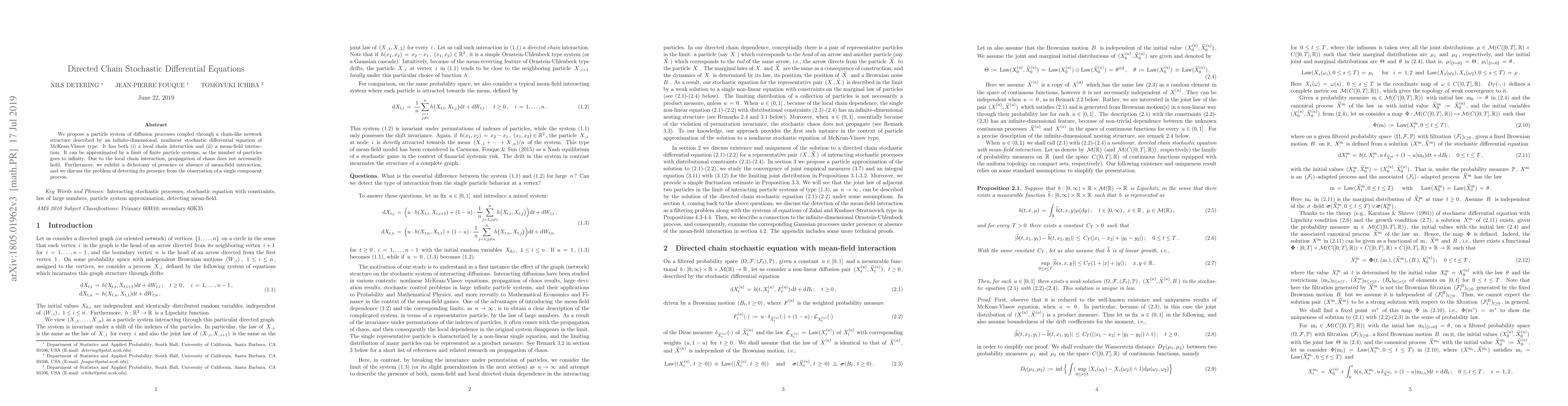We propose a particle system of diffusion processes coupled through a chain-like network structure described by an infinite-dimensional, nonlinear stochastic differential equation of McKean-Vlasov type. It has both (i) a local chain interaction and (ii) a mean-field interaction. It can be approximated by a limit of finite particle systems, as the number of particles goes to infinity. Due to the local chain interaction, propagation of chaos does not necessarily hold. Furthermore, we exhibit a dichotomy of presence or absence of mean-field interaction, and we discuss the problem of detecting its presence from the observation of a single component process.
