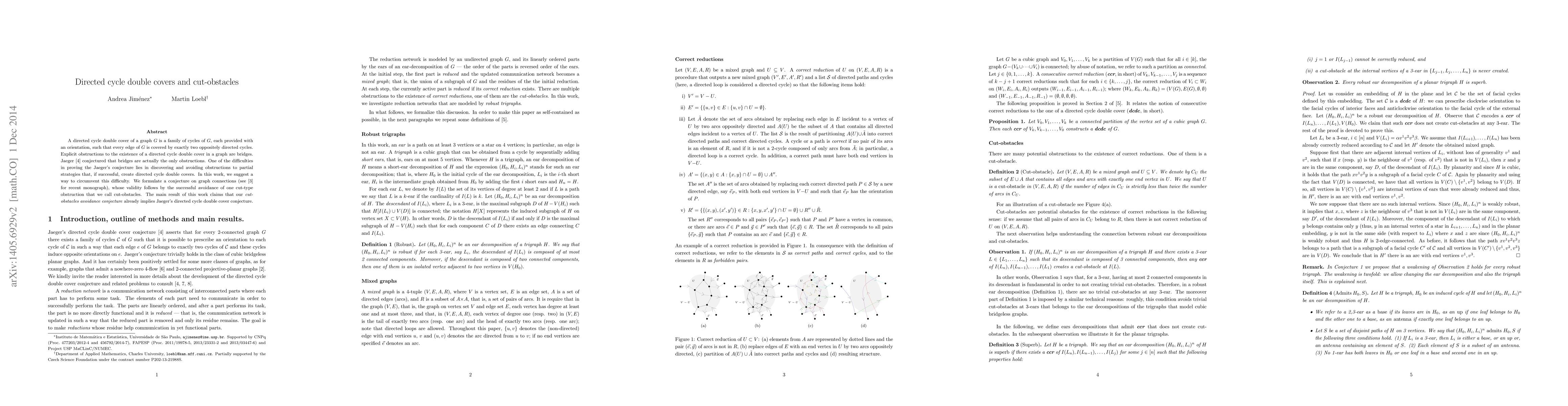 A directed cycle double cover of a graph G is a family of cycles of G, each provided with an orientation, such that every edge of G is covered by exactly two oppositely directed cycles. Explicit obstacles to the existence of a directed cycle double cover in a graph are bridges. Jaeger conjectured that bridges are actually the only obstacles. One of the difficulties in proving the Jaeger's conjecture lies in discovering and avoiding obstructions to partial strategies that, if successful, create directed cycle double covers. In this work, we suggest a way to circumvent this difficulty. We formulate a conjecture on graph connections, whose validity follows by the successful avoidance of one cut-type obstruction that we call cut-obstacles. The main result of this work claims that our 'cut-obstacles avoidance conjecture' already implies Jaeger's directed cycle double cover conjecture.