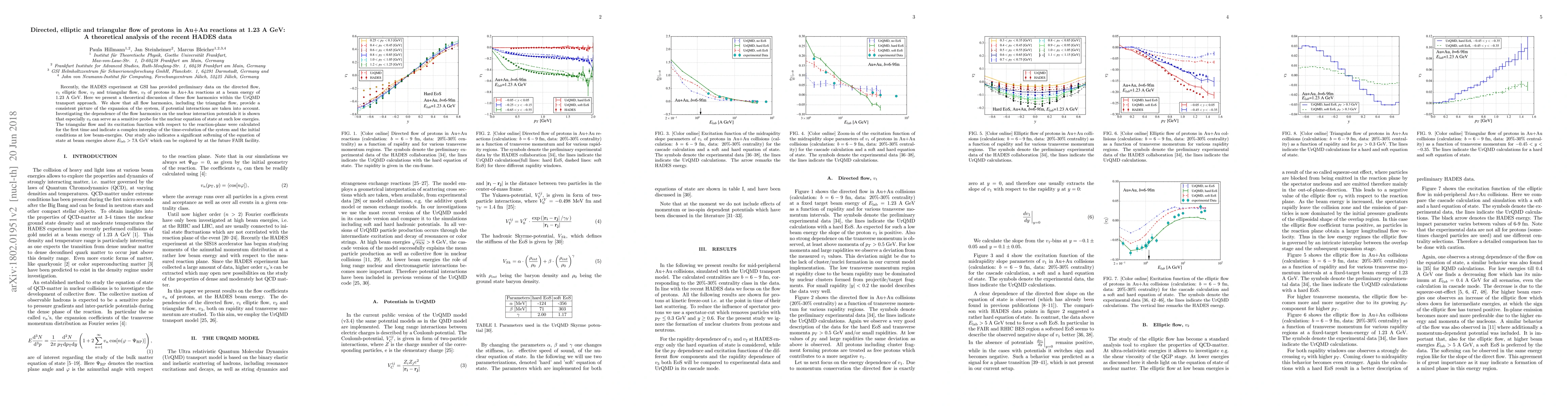 This research paper analyzes proton flow harmonics in Au+Au reactions at 1.23 A GeV, revealing a sensitive probe for the nuclear equation of state, with triangular flow indicating a complex interplay between system evolution and initial conditions.